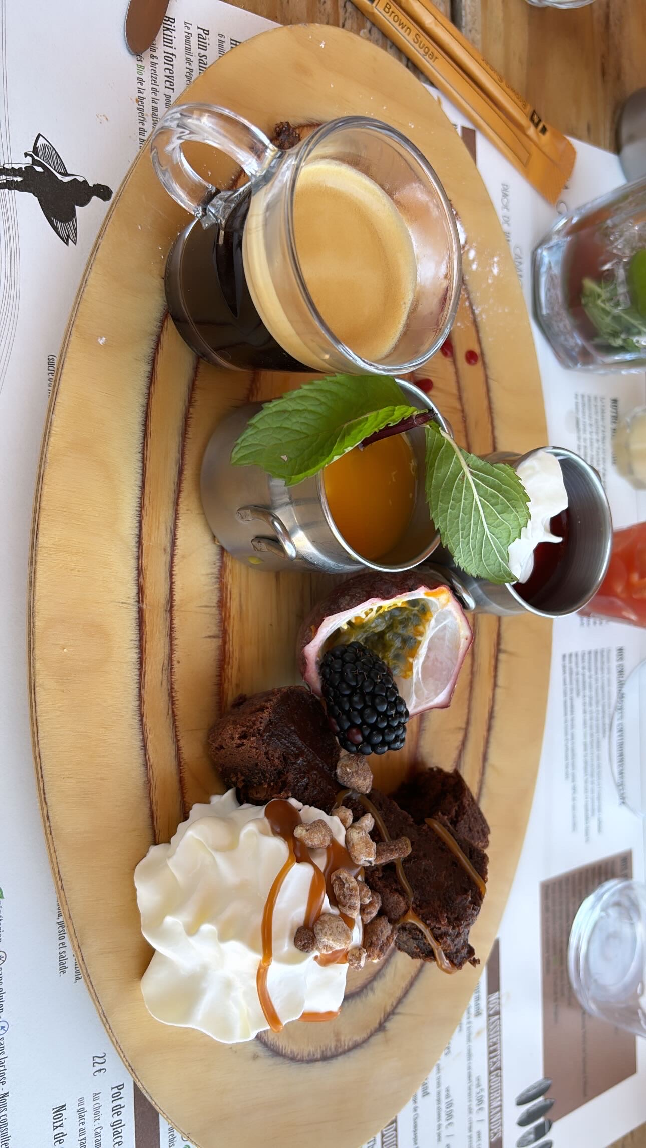 La nourriture est très bonne et le cadre super beau! Les plats sont un petit peu chers mais de qualité. Les portions pourraient cependant être un petit plus généreuses pour les plats. Les dessert par contre sont super bons et très bien servis! Petit bémol pour les places en extérieurs ou la position n’est vraiment pas confortable car les tables pour manger sont trop basses.