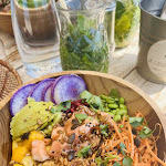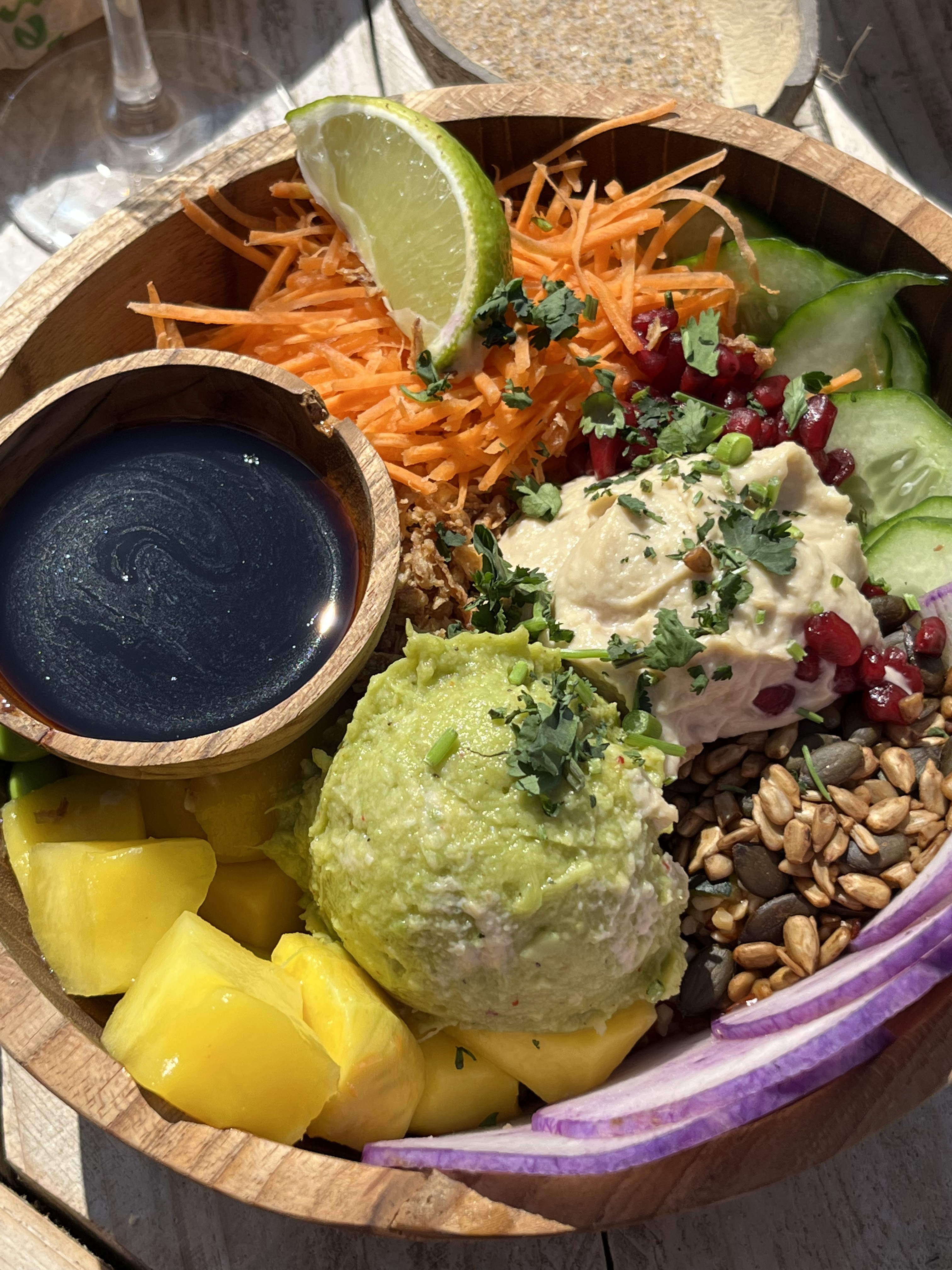 Excellent poke bowl au tofu ! Excellente cuisine pour un resto de plage avec les pieds dans le sable et la vue sur l’horizon de l’océan. Équipe très sympathique!