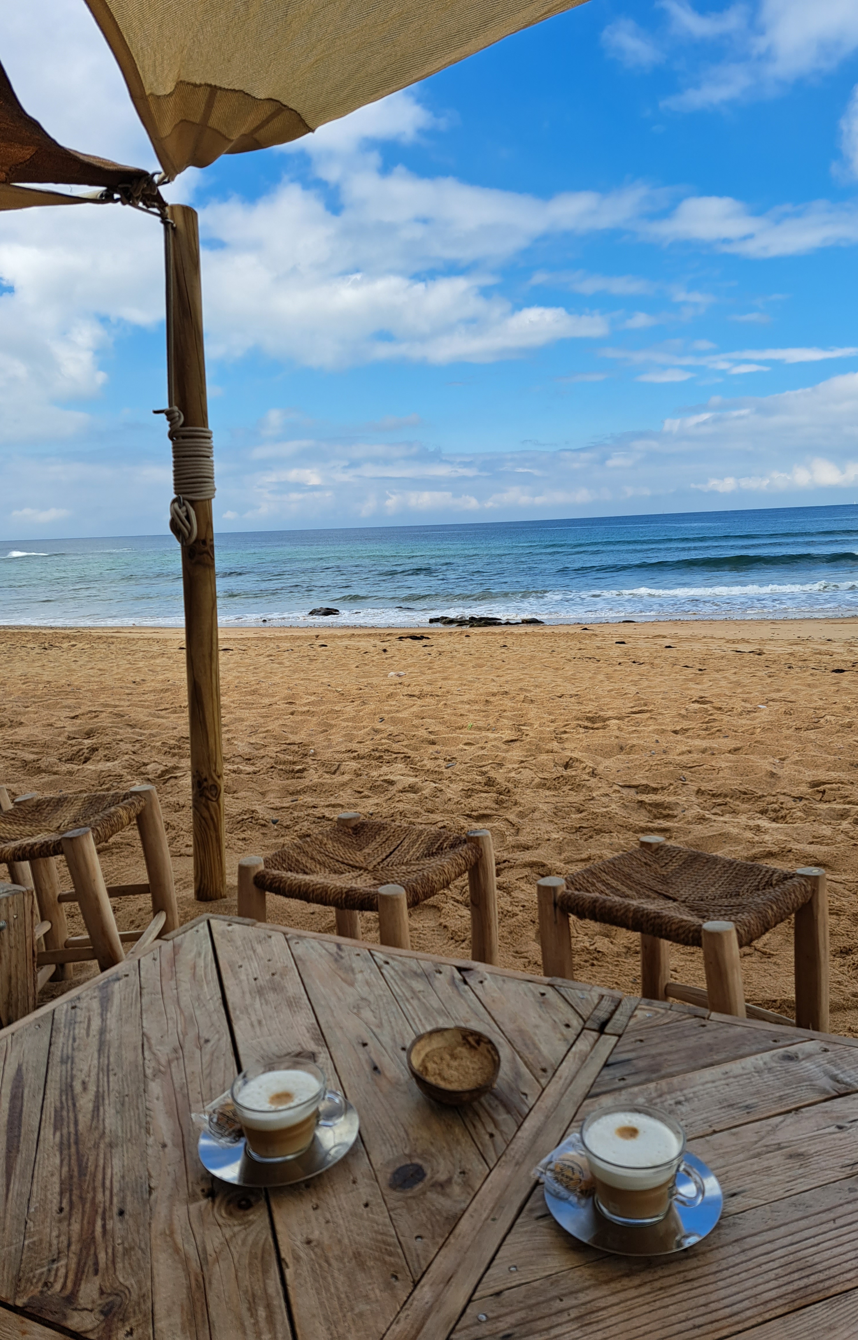 Quel magnifique spot! On a réservé dans ce restaurant, endroit petit et cosy, même si le service s’étale de 12h à 16h, pensez à réserver. Déco magnifique, les pieds dans le sable et avec une vue incroyable sur la mer. On s’est régalé, tout donne envie de goûter on ressort vraiment pas en ayant faim Merci, et petite mention spéciale pour la gaufre O'crazy !
