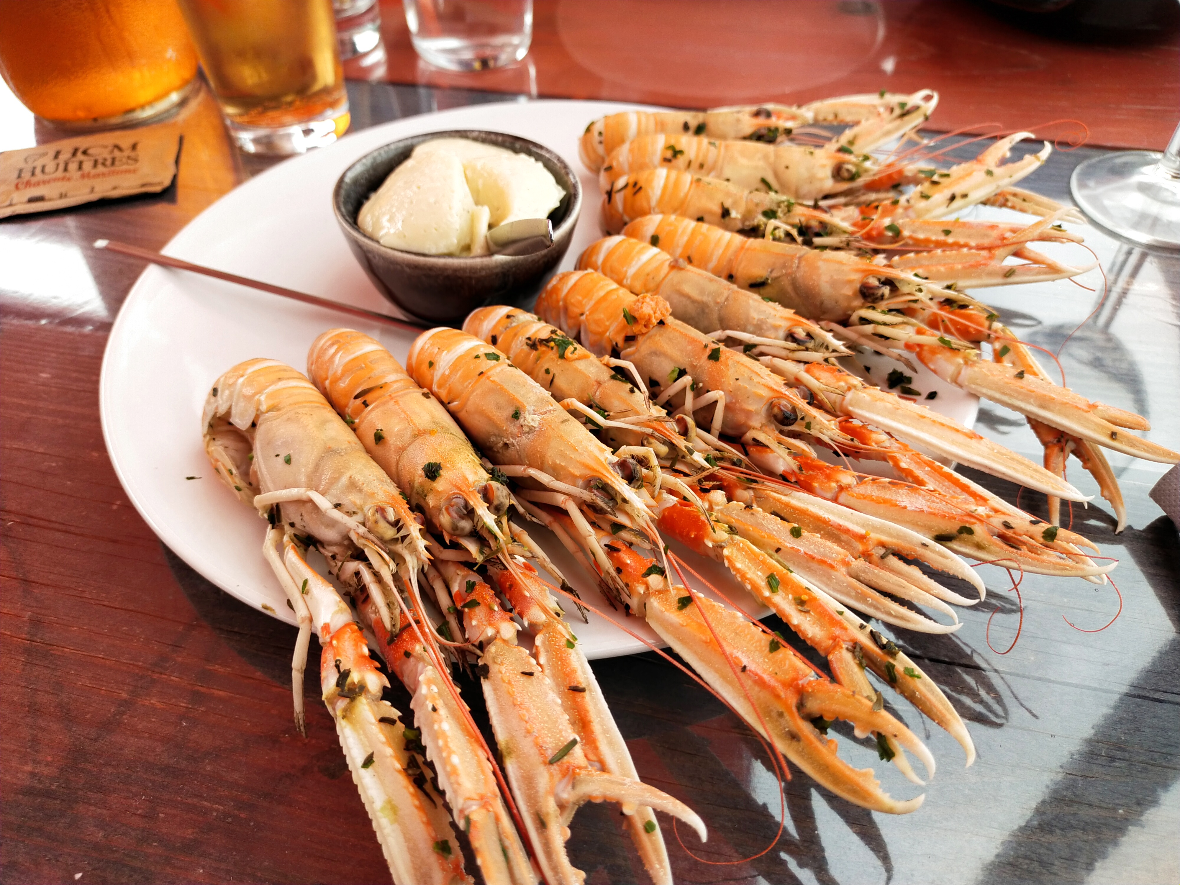 éclade .. gambas... huitres... palourdes + une gentille petite serveuse. tout était parfait au mois d'août. hier un kilo d'excellentes gambas dégustées en famille. encore parfait A l'année prochaine !