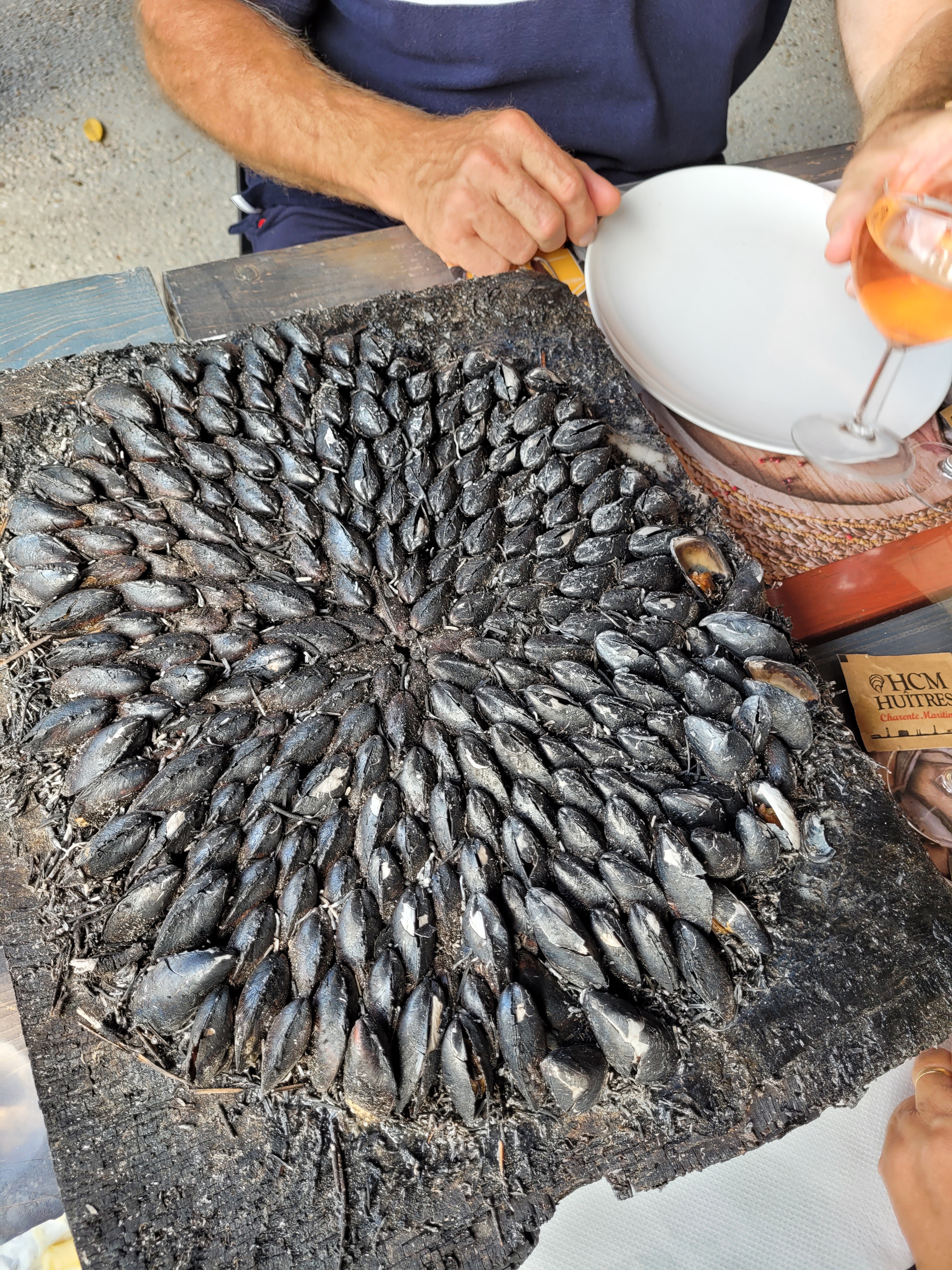 On n y vient pour manger les moules à la plancha. Ambiance à la bonne franquette. Bonne idée de partager son métier ostréiculteurs.