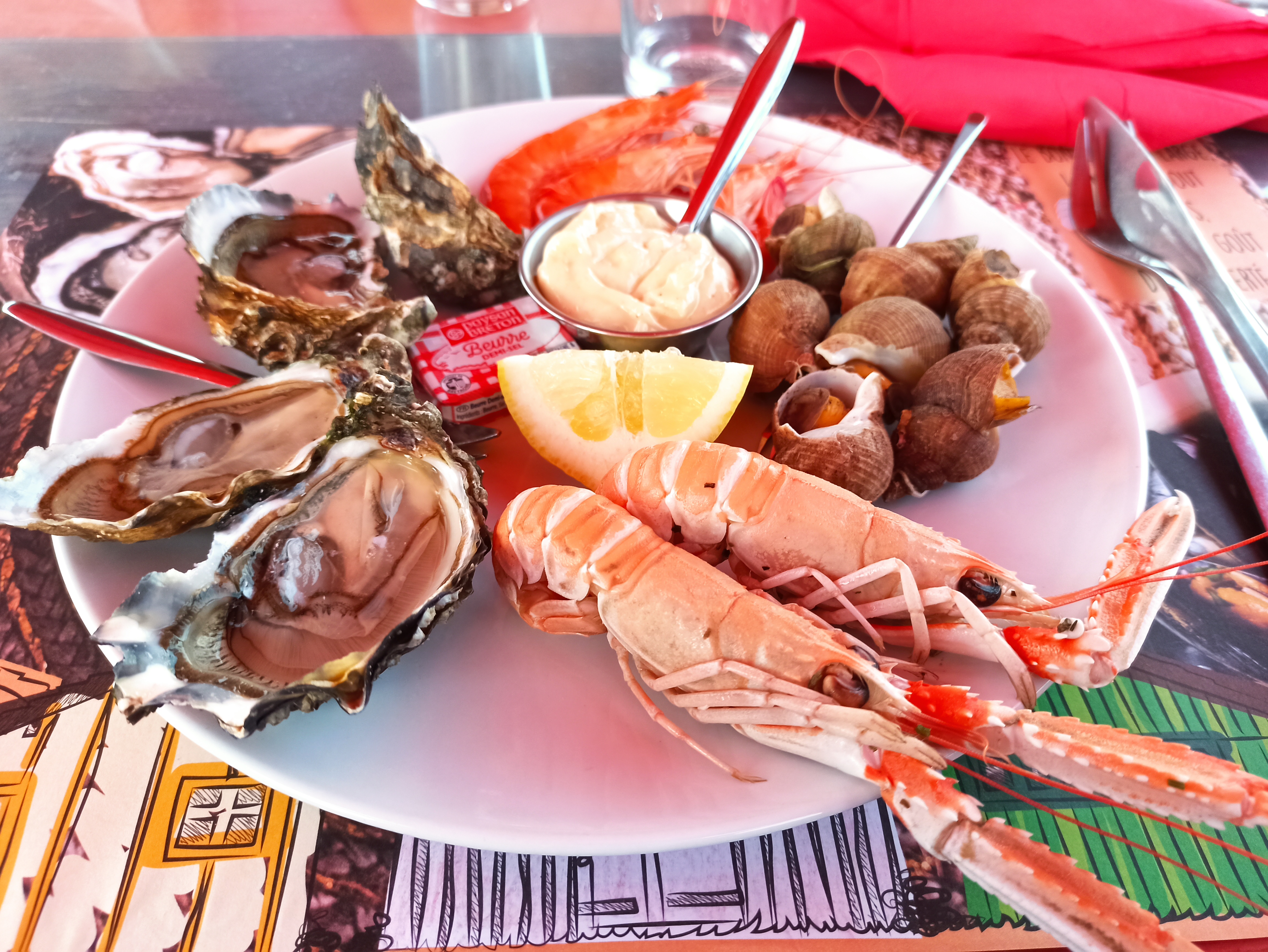 Pour manger de bonnes huîtres et moules.mangez moules à la plancha et fromage blanc au cognac un délice