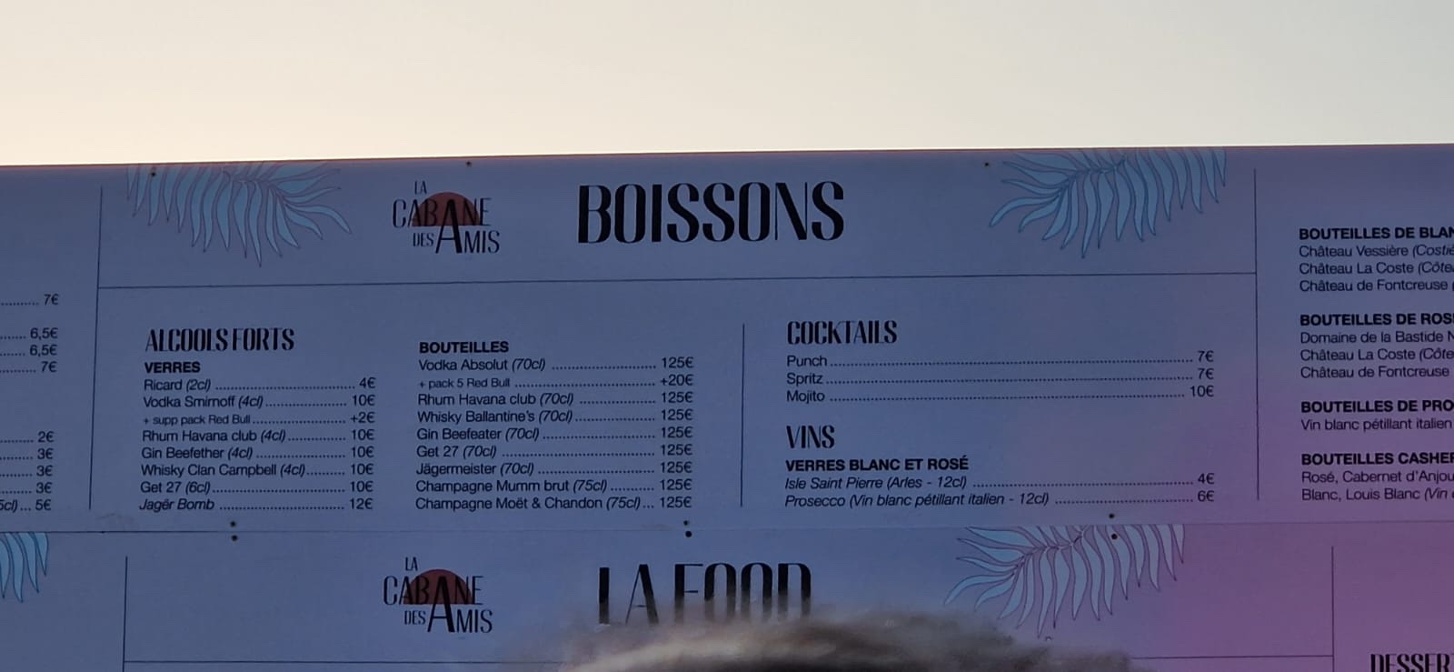 Endroit super sympa si on veut faire la fête ou juste se poser chill avec vue sur la mer. Le concept de nourriture et de boissons top 👍 même si il y a la queue à la plus forte affluence c’est très rapide pour commander ! La pizza était super bonne et il y a du choix au menu. Endroit où l’on se sent en sécurité car beaucoup de vigiles surveillent et le physio ne laisse pas rentrer n’importe qui, public âgé majoritairement de la 20aine/30 aine. Les filles à la caisse était très accueillantes et très cool. Nous reviendrons à la cabane des amis sans hésiter !