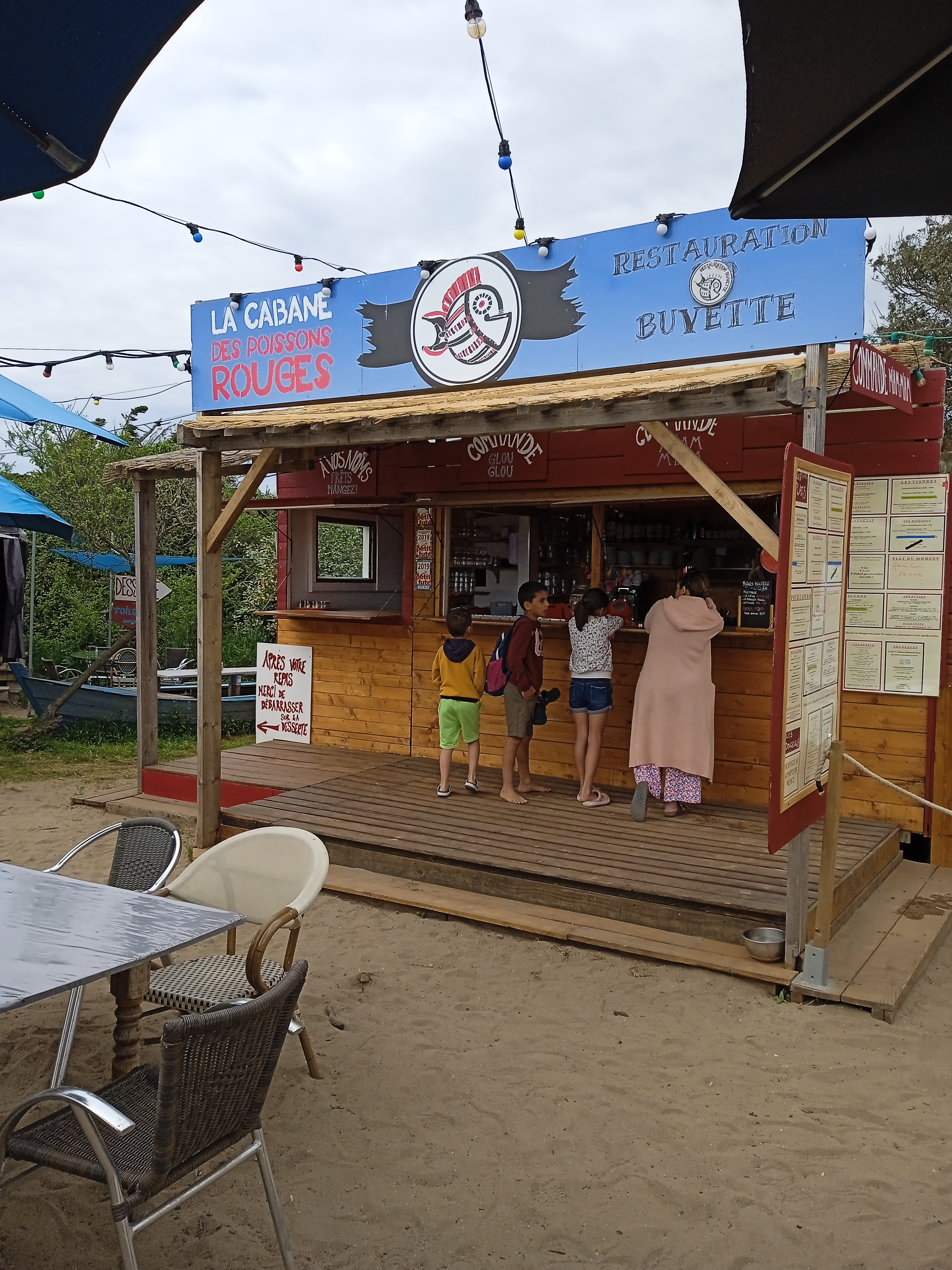 Vous voulez manger au bord de plage sur la presqu'ile de Rhuys, la cabane des poissons rouges est un restaurant type paillote pour y manger des crêpes, galettes, sardines grillées frites ou boire une bonne bière sur des tables en palette de bois et les pieds dans le sable. En juillet aout, un peu de patience car il y a beaucoup de monde mais c'est mérité. La cuisine est de très bonne qualité malgré l'apparence cool , vous allez chercher vos plats et débarrasser la table. Au camping les Genêts *** à Sarzeau, les vacanciers adorent ce genre d'endroit typique, nous conseillons vivement cet établissement.