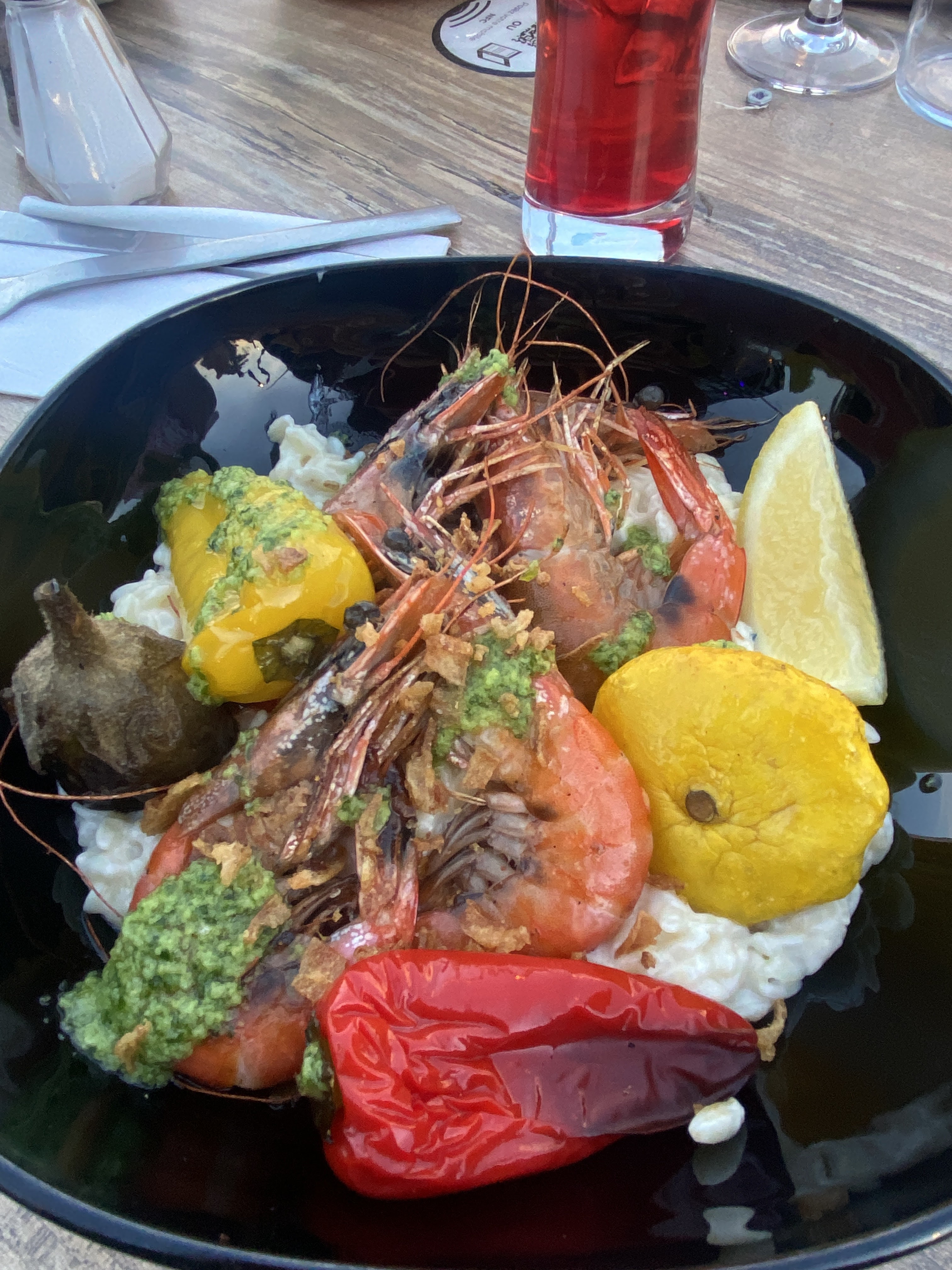 Un restaurant, avec un panorama magnifique, nous étions 4 servis par deux jeunes femmes adorables, et au petits soins. Voilà pour le service et pour la cuisine, la dorade grillée et parfaite et le Risotto de Petites pâtes délicieux. Avis de mes ados pour les burgers oufff tout est dit 🤣
