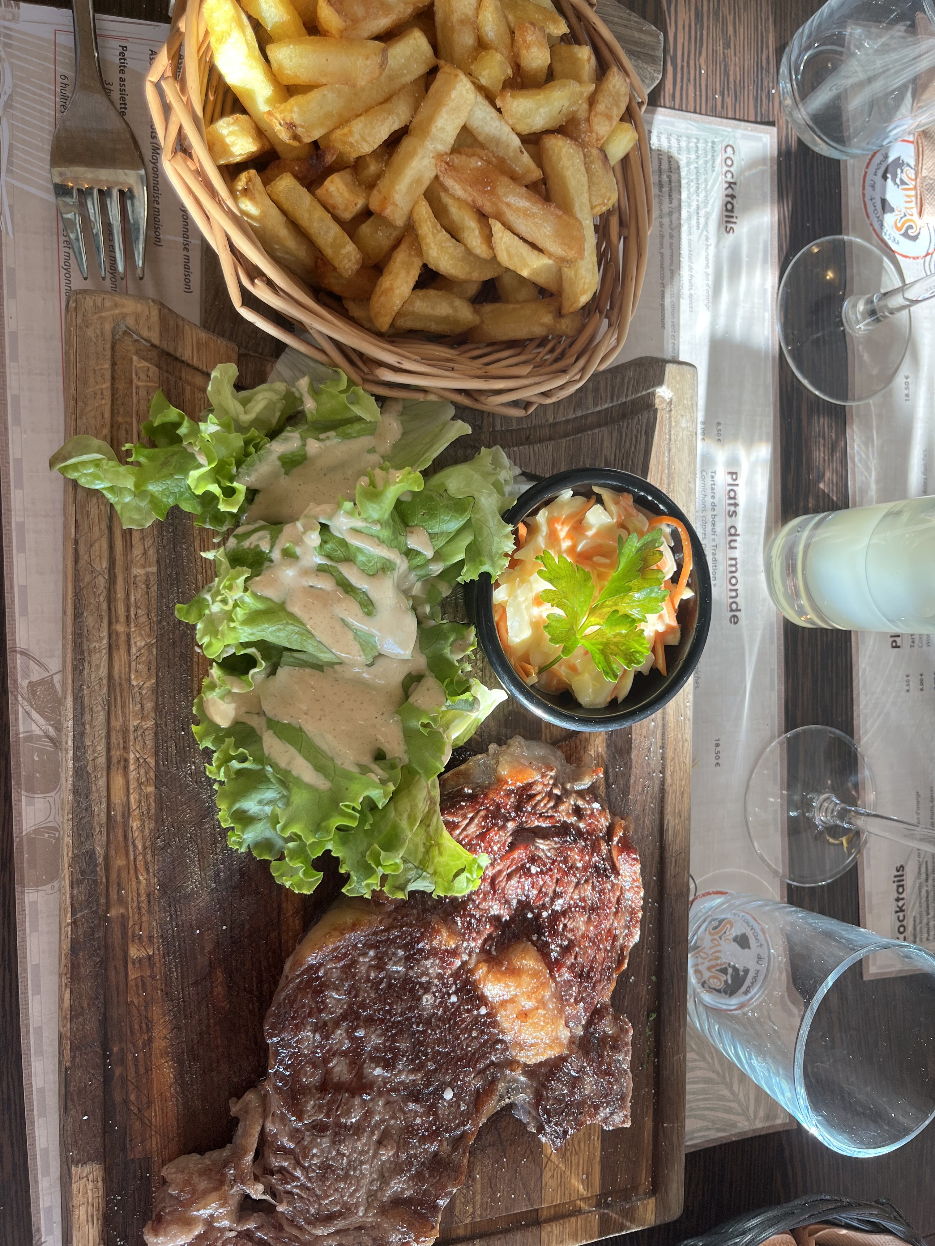 En vacance dans la région, nous avons passez une super soirée, un repas avec des bonnes portions , on s'est régalé. Moules frites, entrecôte et des ribbs excellents. Le service nickel et au top.