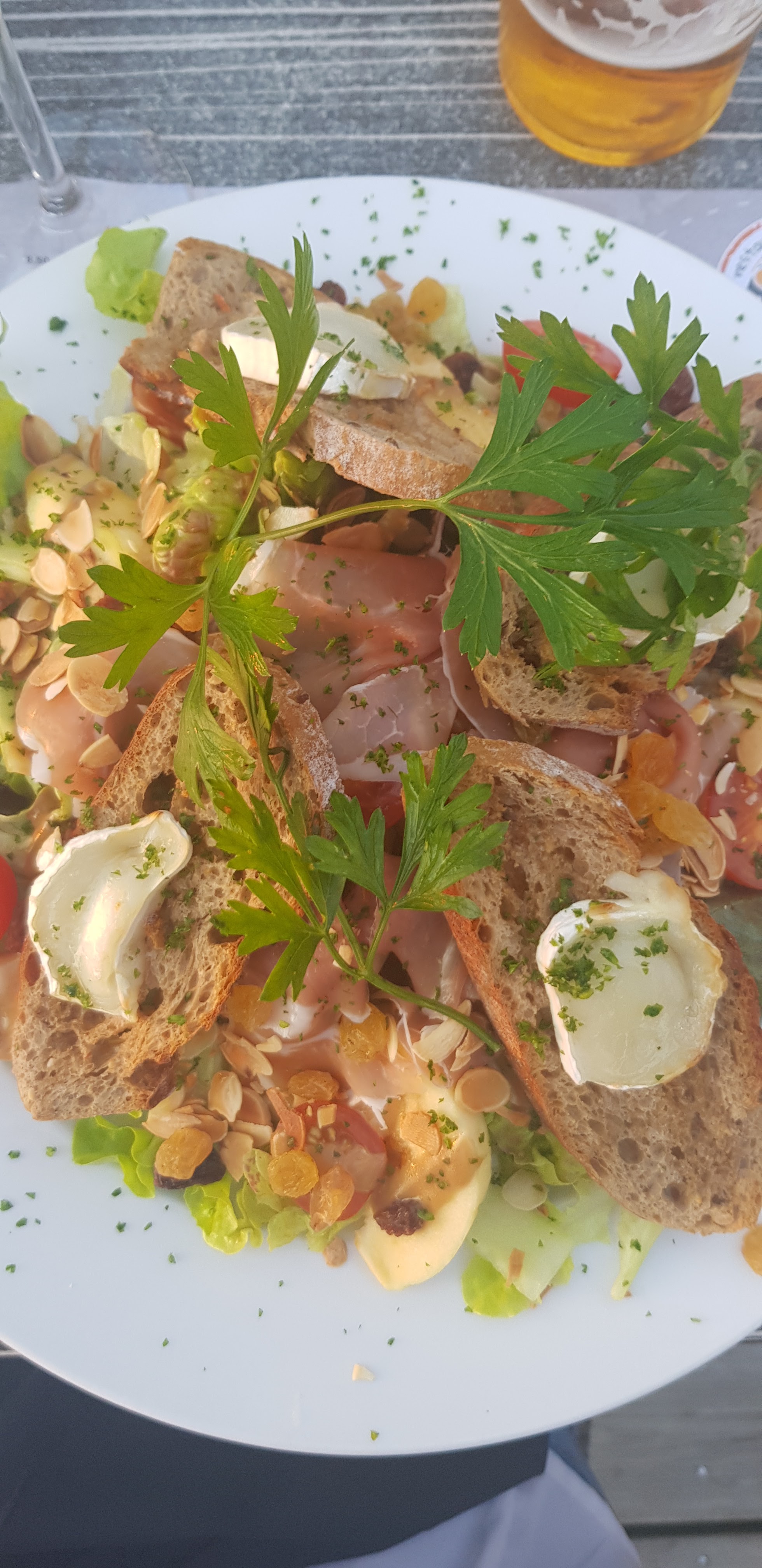 Repas copieux, attention si vous prenez une salade sauve qui pleut, c'est énorme et c'est une entrée. Quand on sort, on n'a plus faim. Service un peu lent entre les plats mais comme ça vient de redémarrer, on ne peut leur en vouloir. Les prix sont correct vu la quantité dans l'assiette. Qualité excellente. Je conseille de réserver car restaurant toujours complet.