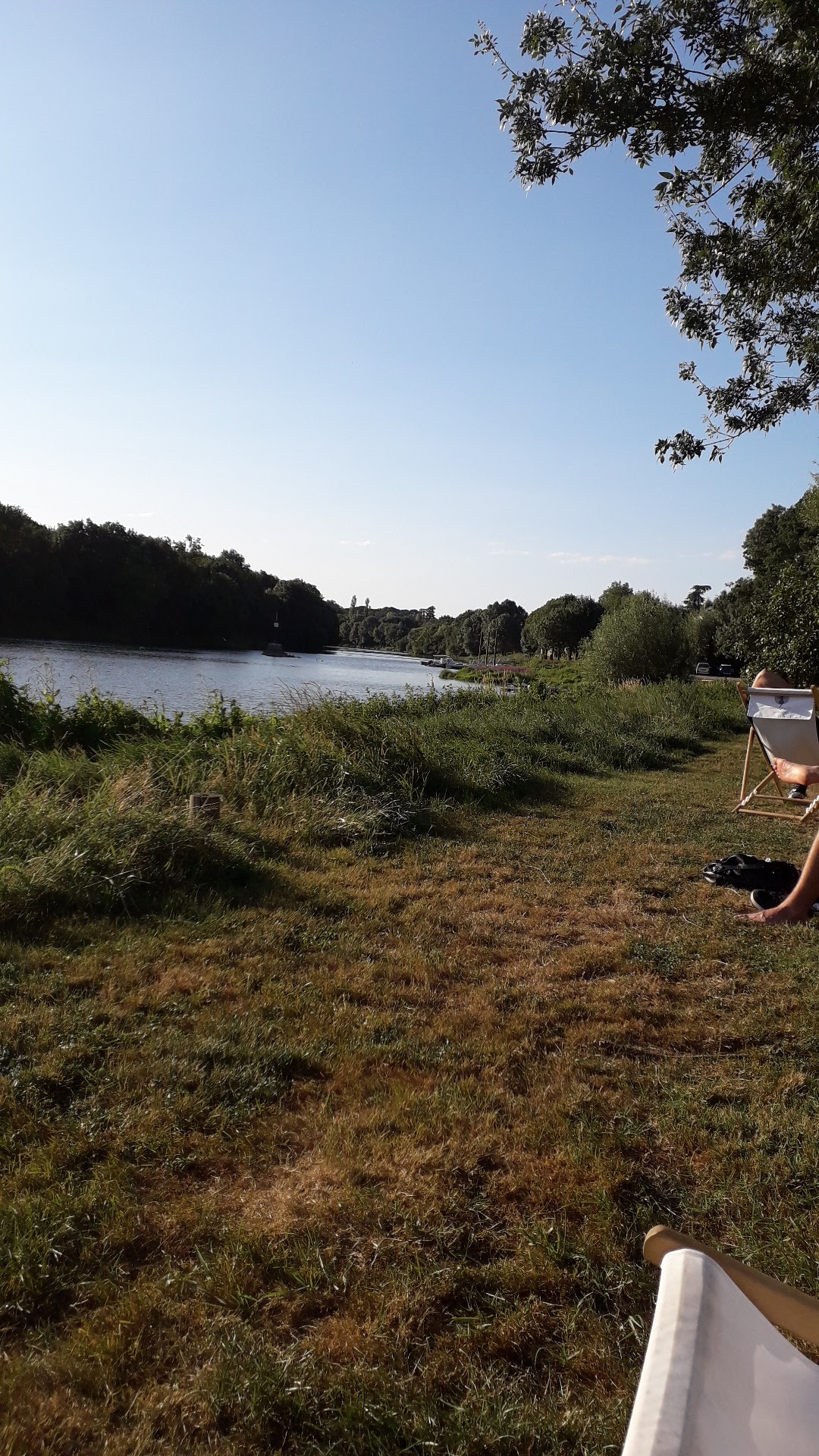 Invitée par des amies j ai pu découvrir un lieu reposant simple accueillant et d un calme car nous sommes près de l eau et entouré de verdure c'est vraiment le lieu idéal pour prendre un verre ..des tables pour s y installer ou des transats au bord de l eau j vous recommande le layon c'est un régal accompagné d une assiette mixte (charcuterie, fromage pâté rillettes) et la c un moyen de s s'évader ..oublié ses problèmes un moment...allez y c génial