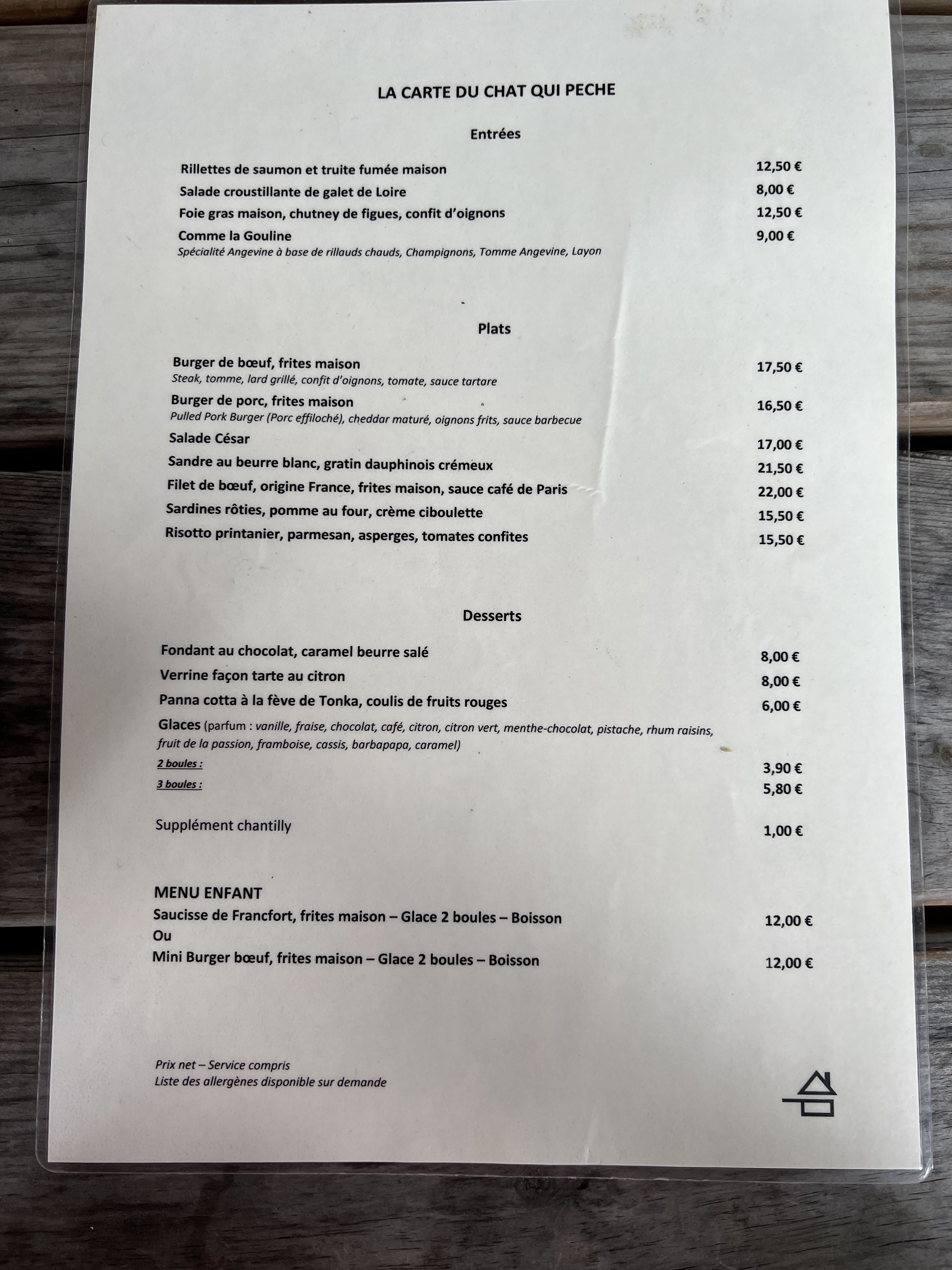 Nous avons passé un déjeuner ce dimanche au chat qui pêche.. Spritz degueulasse on s’est dit que c’était une faute de débutant... Foie gras insipide et je viens du Lot je sais de quoi je parle, et la hampe blonde d’Aquitaine présentée comme un steak grillé.. le pire s’eta Le pavé de sandre une sorte de filet d’un poisson qui ne devait pas être du sandre.. On a arrêté les frais là déçu malgré un site calme et tranquille.. C’est bête de rater sa cuisine un dimanche...