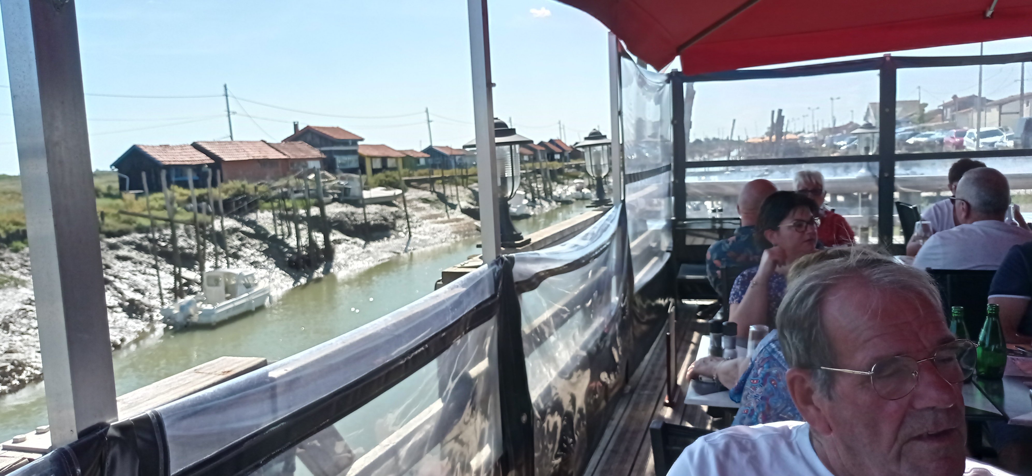 Arrêt déjeuner sur une terrasse ombragée au bord de la Seudre égayée par l'enfilade de cabanes de pêcheurs colorées et rythmée par le passage de barques, de petits bateaux de plaisance. Les plats proposés avec des produits frais ont régalé nos papilles : assiette d'huîtres ou langoustines ou soupe de poissons... Leurs moules à la charentaise accompagnées de petites pommes de terre de l'île de Re étaient délicieuses et méritent le détour. Le vin de production locale à été apprécié. De même pour les desserts du jour faits maison ! Le personnel est à nos petits soins et souriant. Le temps s'est écoulé rapidement sans que nous nous en rendions compte. Il est certain que nous y reviendrons !