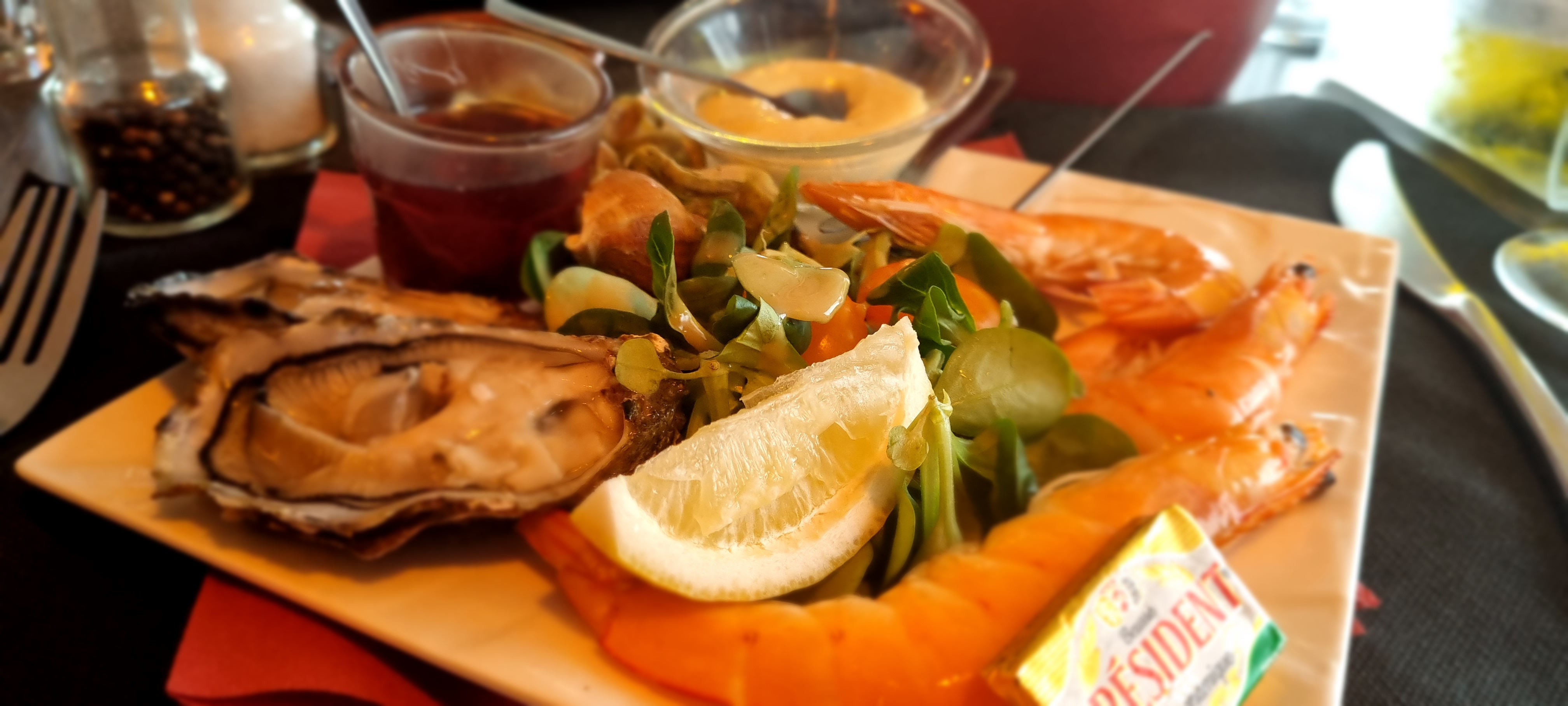 Déçu : nous nous réjouissons de manger un plateau de fruit de mer et on nous a servi un plateau très minimaliste : quelques petits bouquets de supermarché, quelques langoustines pas plus grosses que les crevettes, des huitres certainement N°4 et des buleaux bref un plateau soit a 24,50€ mais minables. Il vaut mieux vendre des produits de qualité et de calibres avantageux quitte à pratiquer des prix en rapport. Un plateau de fruit de mer standard dans un établissement spécialisé en produit de la mer se vend au bas mot 50 € par personne et en général on est pas déçu ou bien on en fait pas