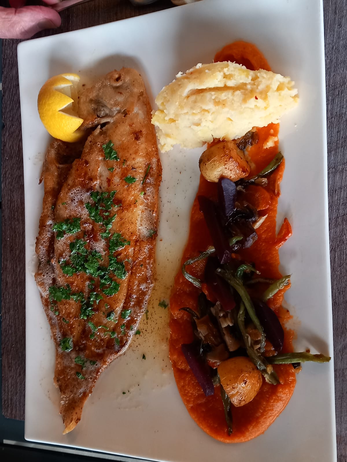 Un régal comme à chaque fois et le filet de perche... Humm Bref magnifique Seul bémol c'est un peu bruyant 😢