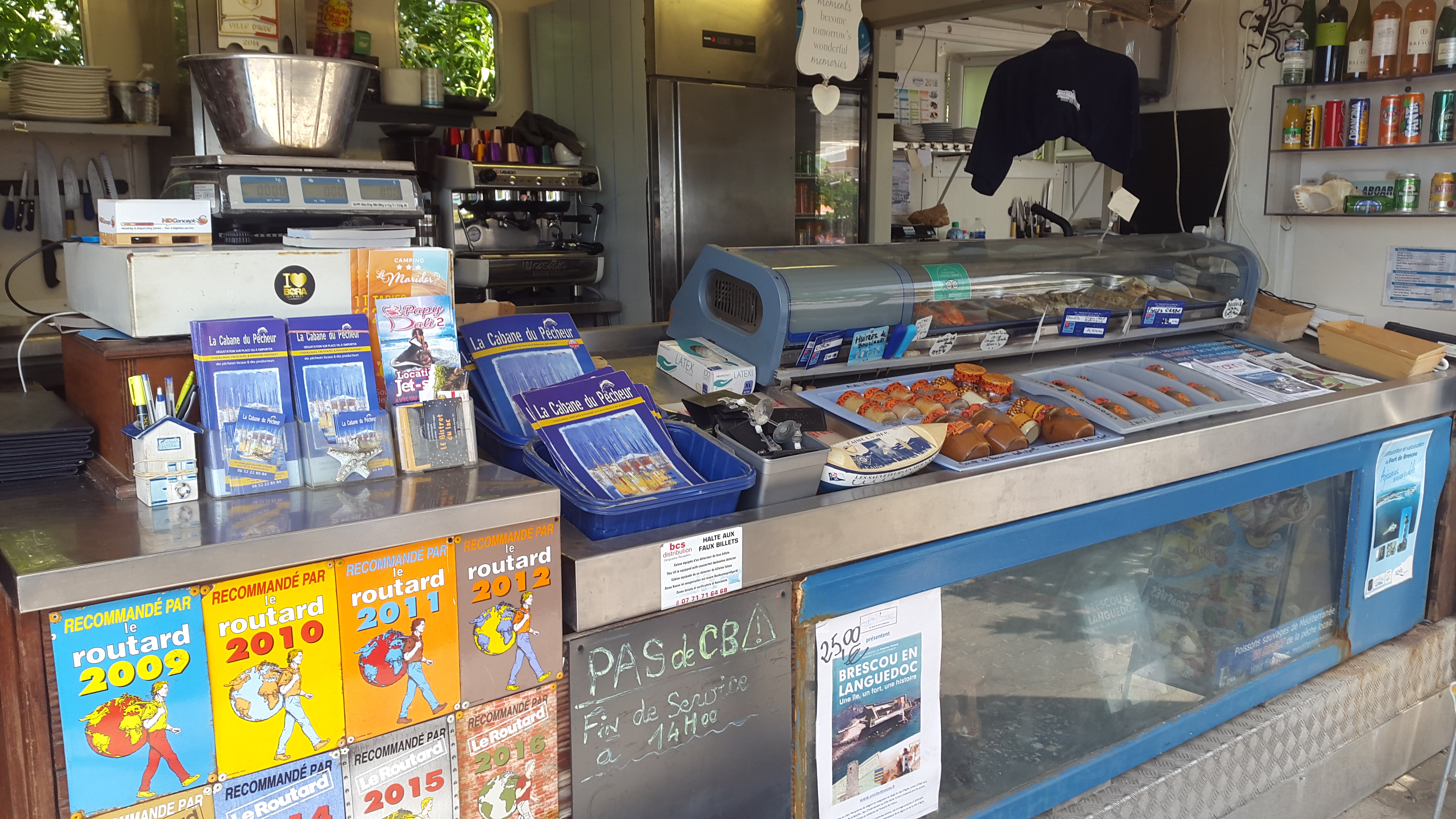 Très bon resto où l'on vous sert exclusivement des produits de la mer des pecheurs locaux qui ont leur étals à 2 pas. Très bon accueil, les deux serveuses ont été très gentilles (ces petits sourires affectueux envers notre fils qui font toujours plaisir), l'une d'elle a pris le temps de bien nous conseiller, ma femme qui n'est pas poisson a été orienté vers un poisson pas trop fort et elle a adorée. Pour ceux qui se plaignent qu'ils ne prennent que du liquide oublient de préciser qu'il y'a un distributeur à 10m du resto. Un incontournable du cap d'agde.