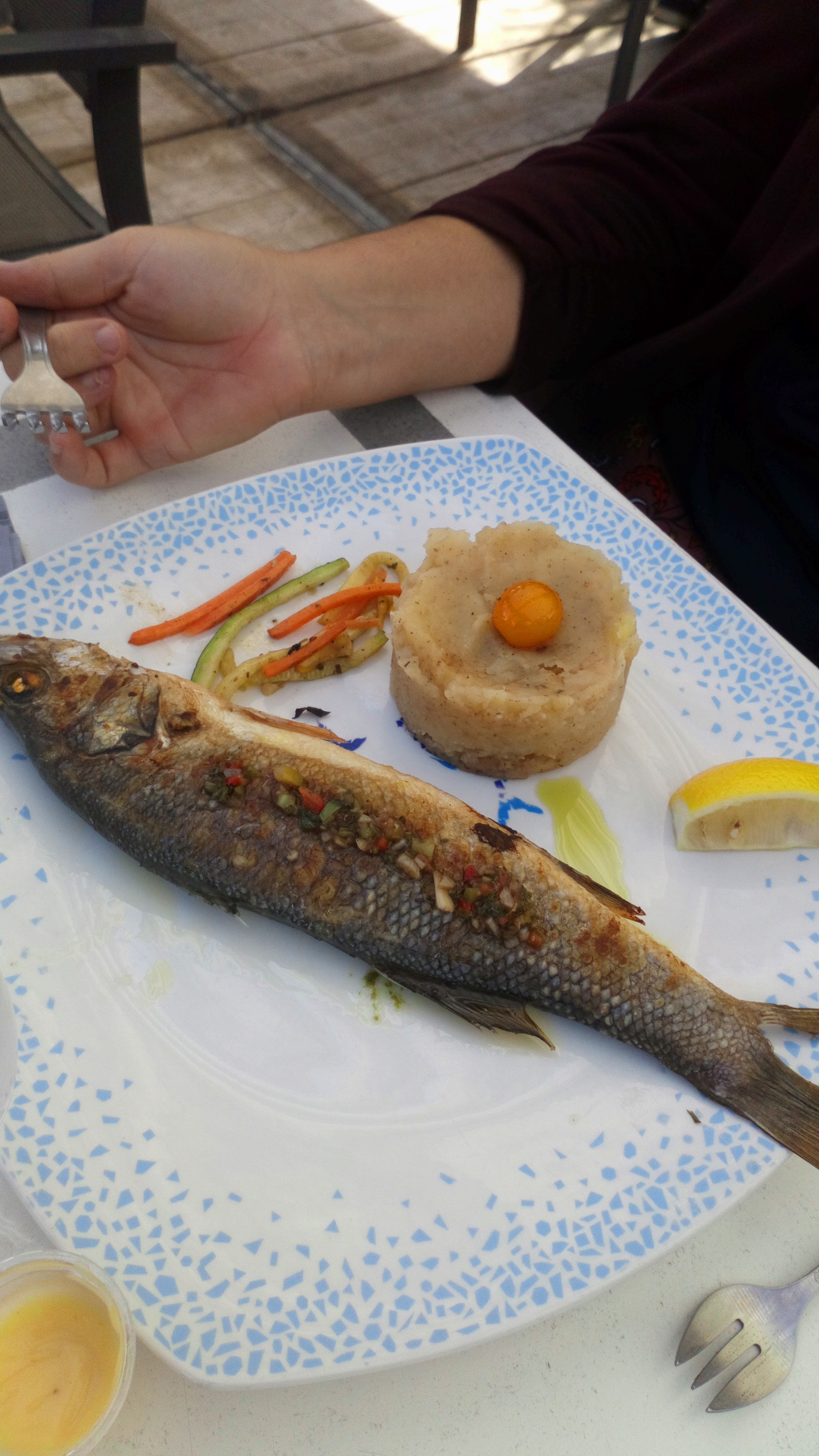 Une tres bonne expérience en famille! Poisson du jour à la plancha et écrasé de pomme de terre maison, on reviendra!