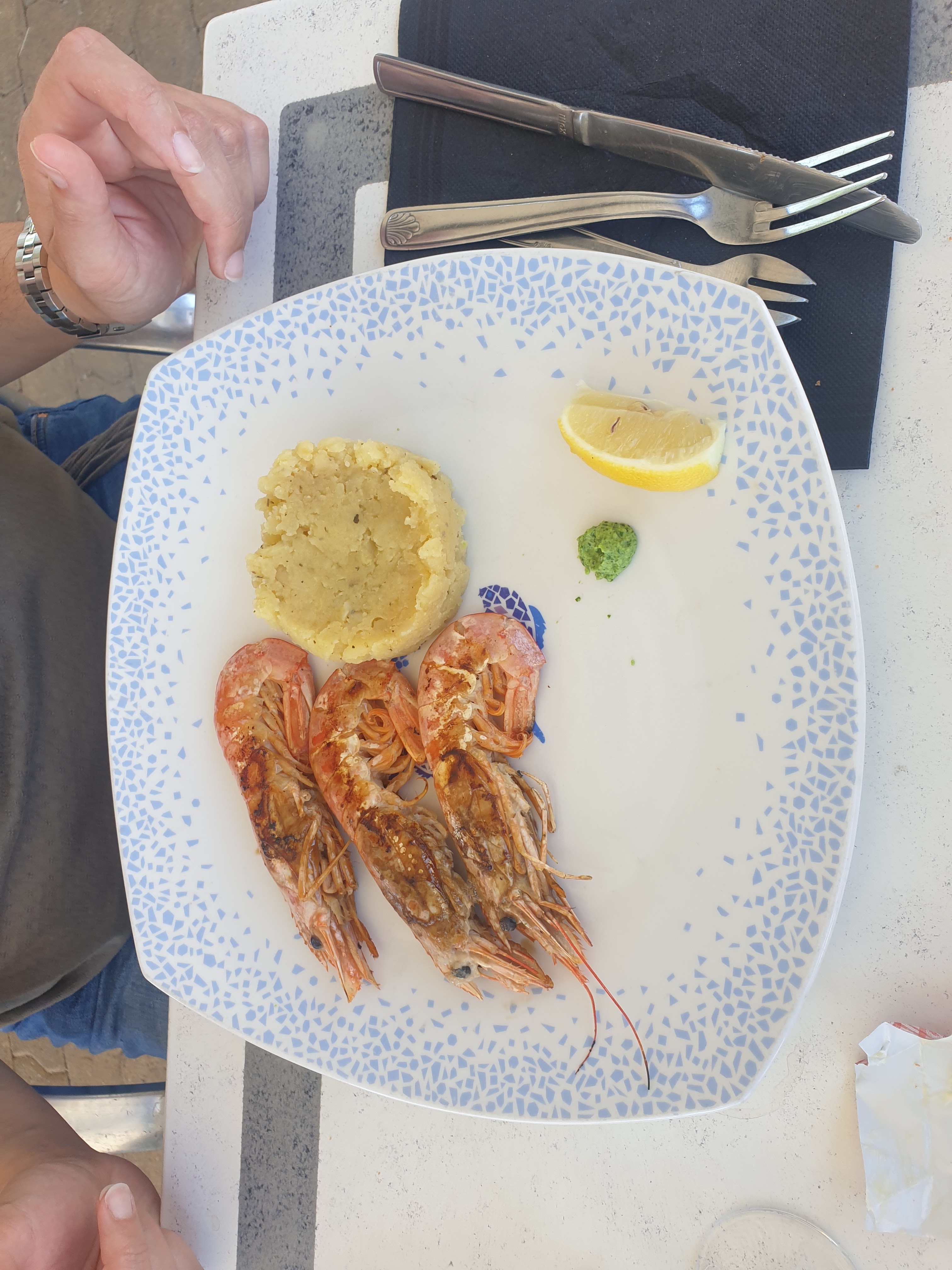 Cabane tout à fait simple. Portion limite pour l'assiette de gambas. Pour la seiches portion vraiment correcte et produit bien frais