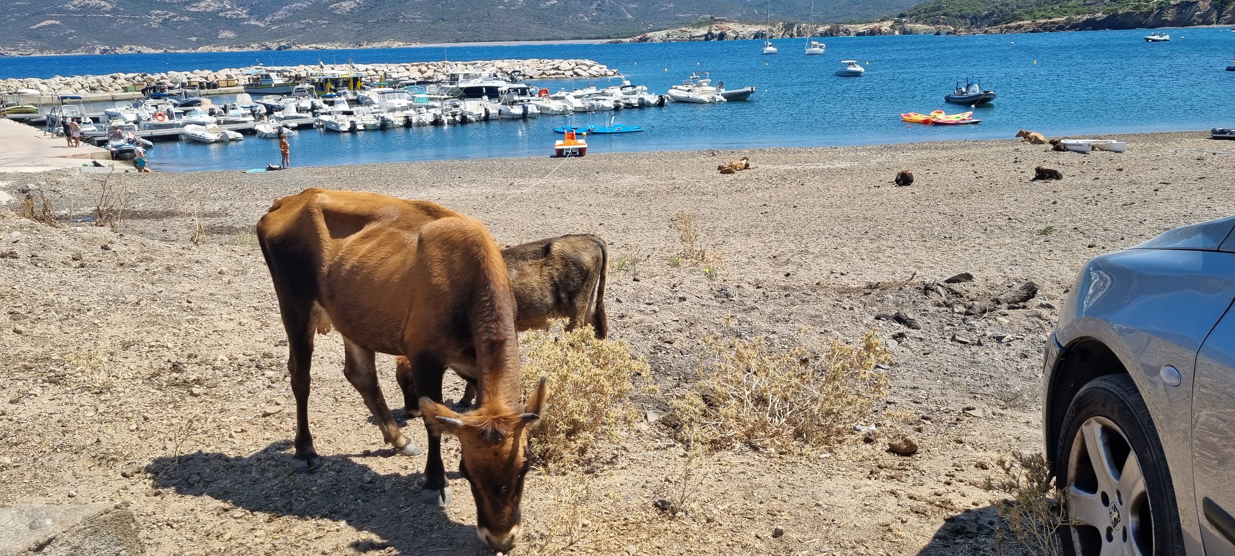 Excellent restaurant au bord de la mer à Galeria avec du poisson pêché du jour. Cerise sur le gâteau, des vaches se font bronzer sur la plage !