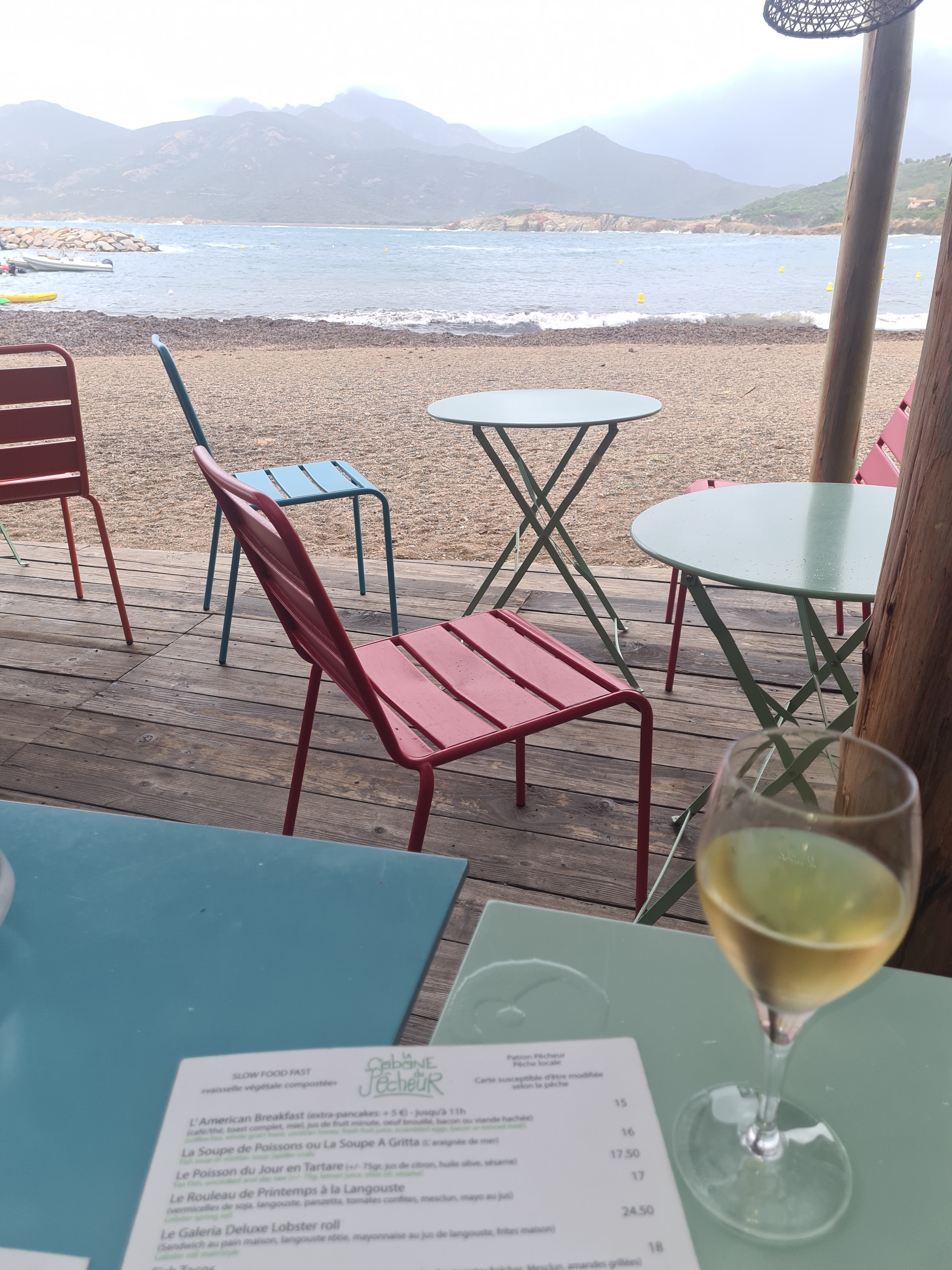 Les produits sont frais et de bonne qualité, la déco rustique et la vue plage imprenable. Ce jour là, avec l'orage au fond sur les montagne, c'était magnifique. Prévoir de réserver à l'avance, nous avons eu la chance d'avoir de la place pour 2 sans réserver mais à ont vus une vingtaine de personnes se faire refouler à cause de l'affluence.