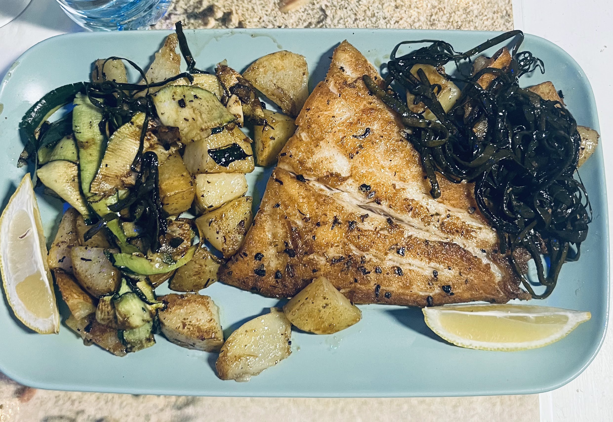 Mardi 26 Dec 23 midi. Parillade de poissons plancha incroyablement Excellente. Les produits sont frais,le 'serveur kader' très attentif à l'égard de son service.Vous pouvez suivre la cuisson de vos poissons plancha .du haut de la salle de restaurant .Ambiance très agréable.Je recommande mille fois.