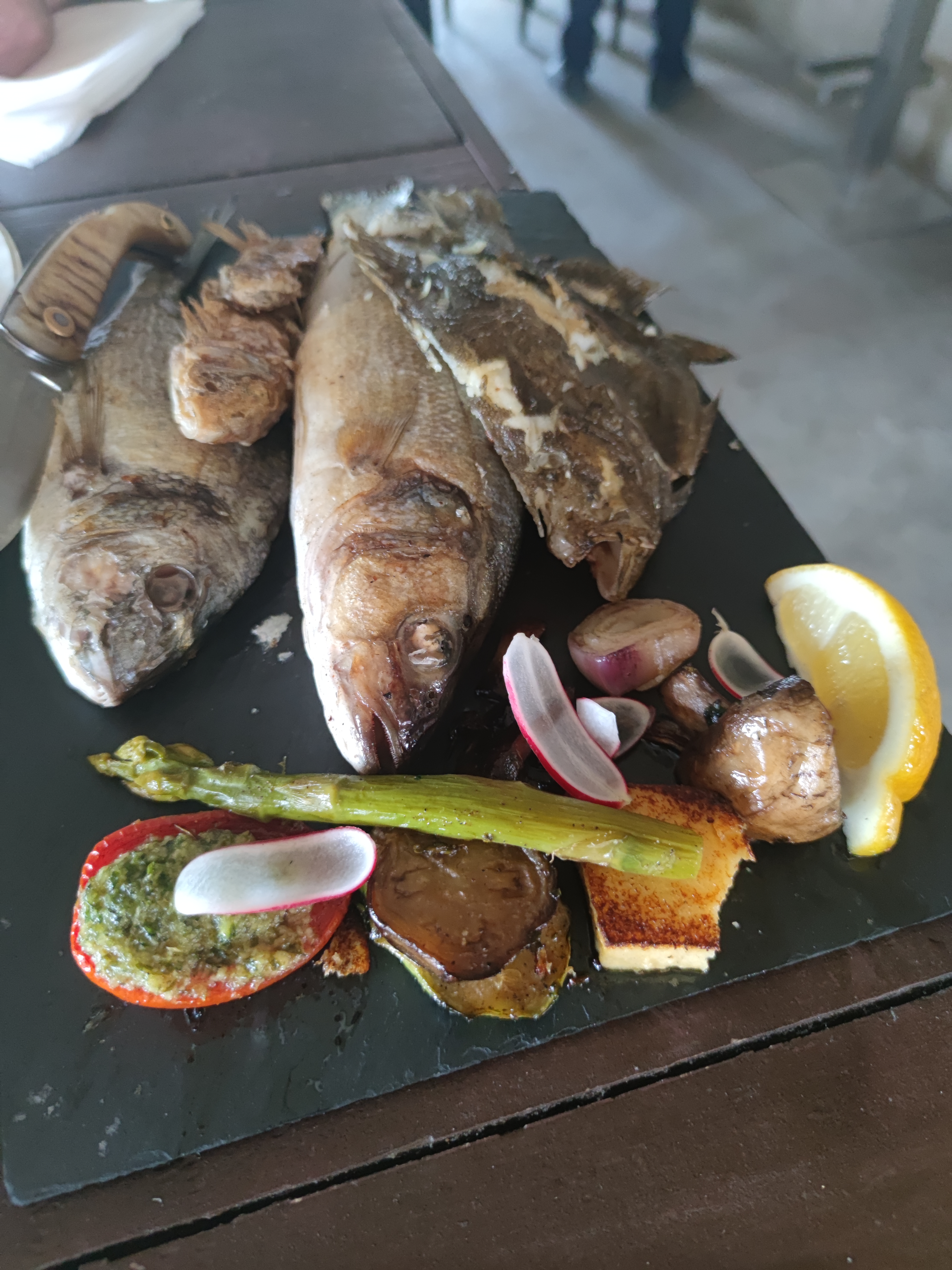 Une belle surprise en s'arrêtant là avant de prendre le bac : équipe très sympa efficace sans se prendre la tête, poissons grillés excellents avec frites maisons et ambiance magique ! Petit feu de cheminée dans la salle principale, huile d'olive a tomber, n'oubliez pas de visiter le musée 😂
