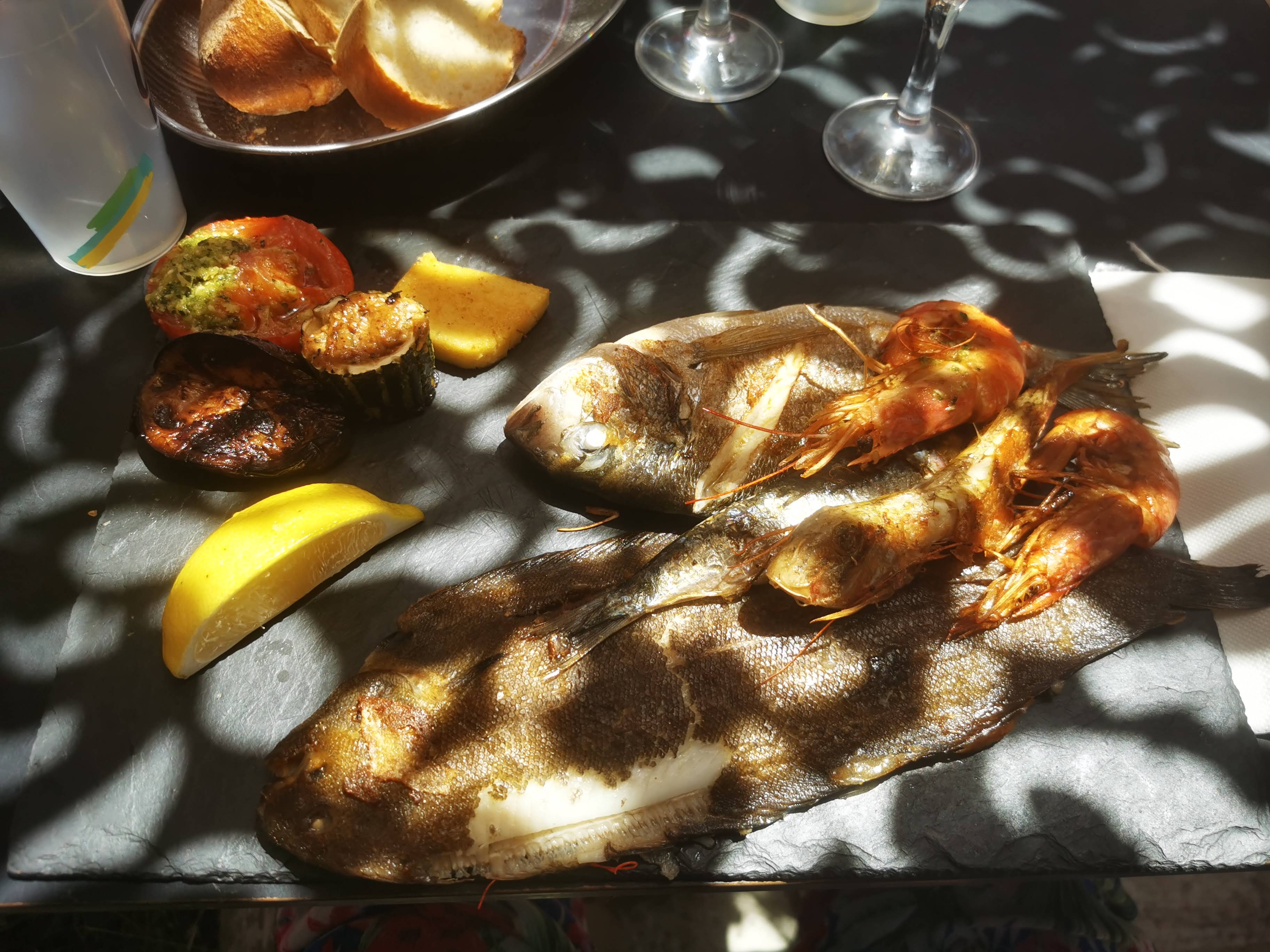 En transhumance de nuit entre Toulouse et Saint Tropez avec ma fille Malgré la crainte des moustiques.,. Quel bonheur l endroit . Le cadre est top de top Huîtres , calamars salade tomates.,.et un turbot de dingo grillé au feu de bois très bien réussi et d une fraîcheur top. Une jouissance buccale dans un cadre de rêve Merci à la joyeuse équipe et vive le fou