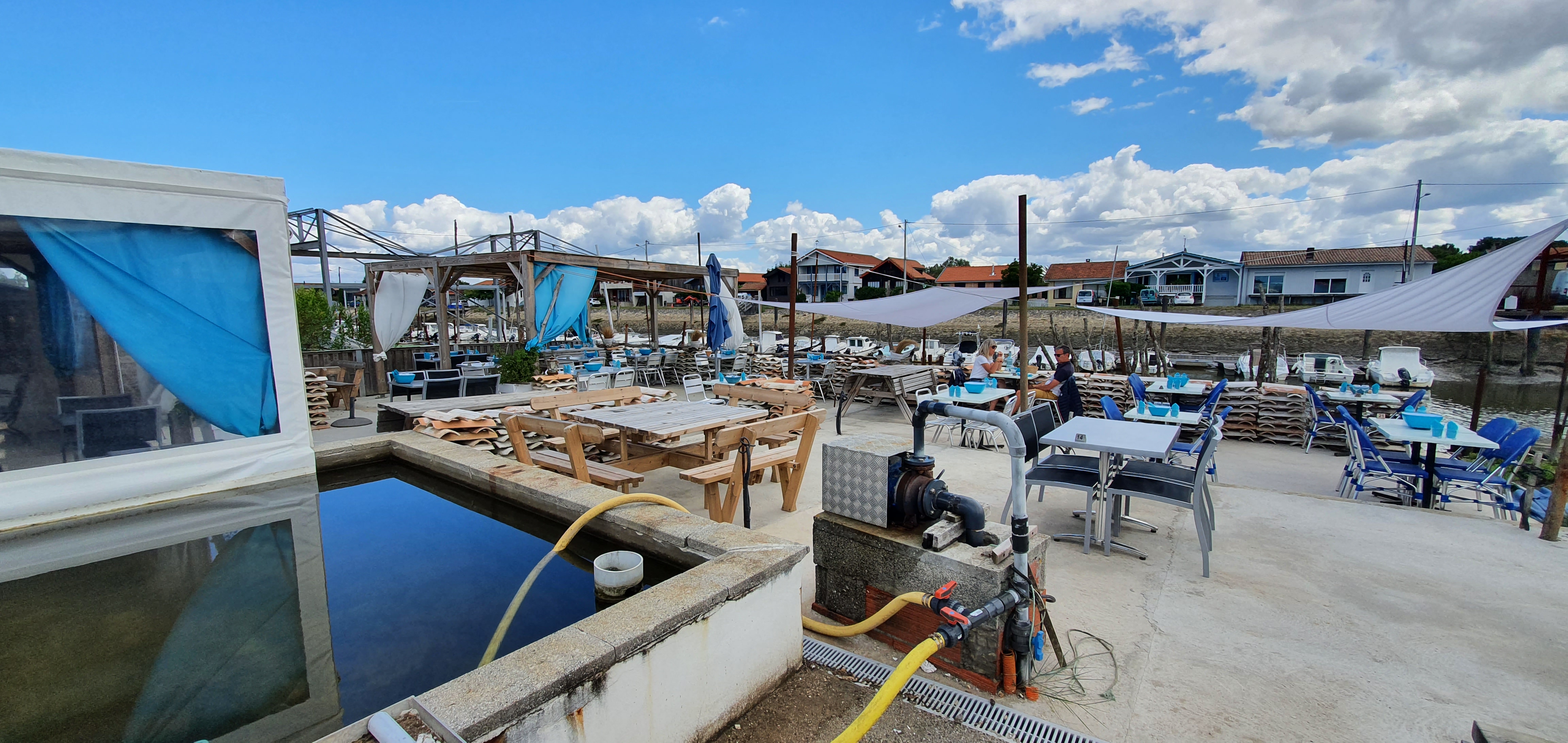 Accueil très agréable, l'endroit est suffisamment éloigné de l'agitation des voitures pour qu'il soit calme et romantique. Les huîtres et fruits de mer hyper frais avec le vin blanc confortablement installé à côté des bateaux à font plats en font un moment délicieux.