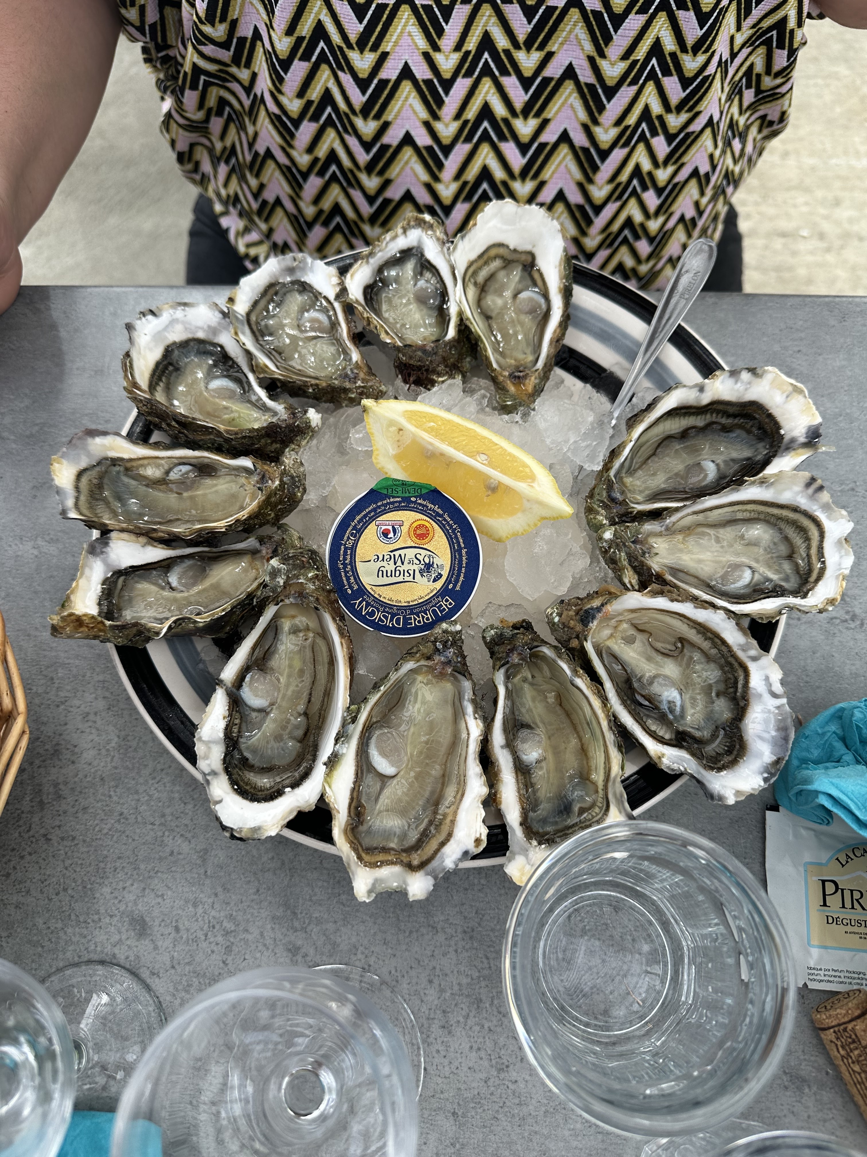 Découverte de cette cabane au gré d’une promenade en vélo. Ce n’est pas un piège à touriste: Monsieur pêche et Madame tient la boutique: chouette d’échanger avec eux. Très bon accueil, huîtres excellentes et entre deux mers de qualité. Le soleil était de la partie et la terrasse agréable.