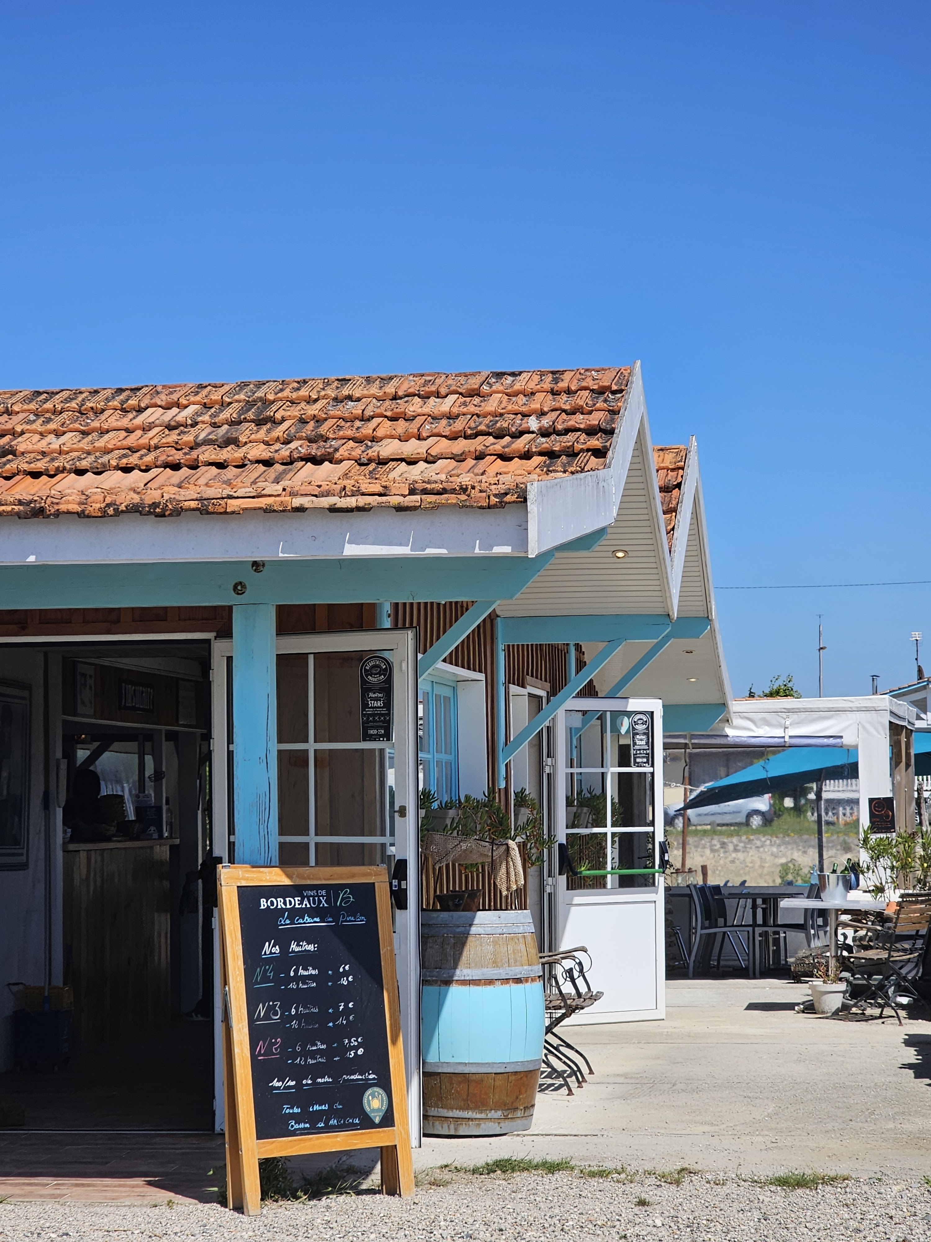 Nous sommes allé déguster des huîtres hier avec un groupe d’amis, cadre idyllique, produits de qualité (huîtres et pâtés au piment d’Espelette incroyables), le personnel charmant, cabane très propre et une déco avec goût, c’est sûr et certain! Ce bleu est adéquate du cadre et rappelle parfaitement notre beau bassin. Un vrai petit coin de paradis avec cette cabane. Je reviendrai sans hésitation, ça c’est sûr!