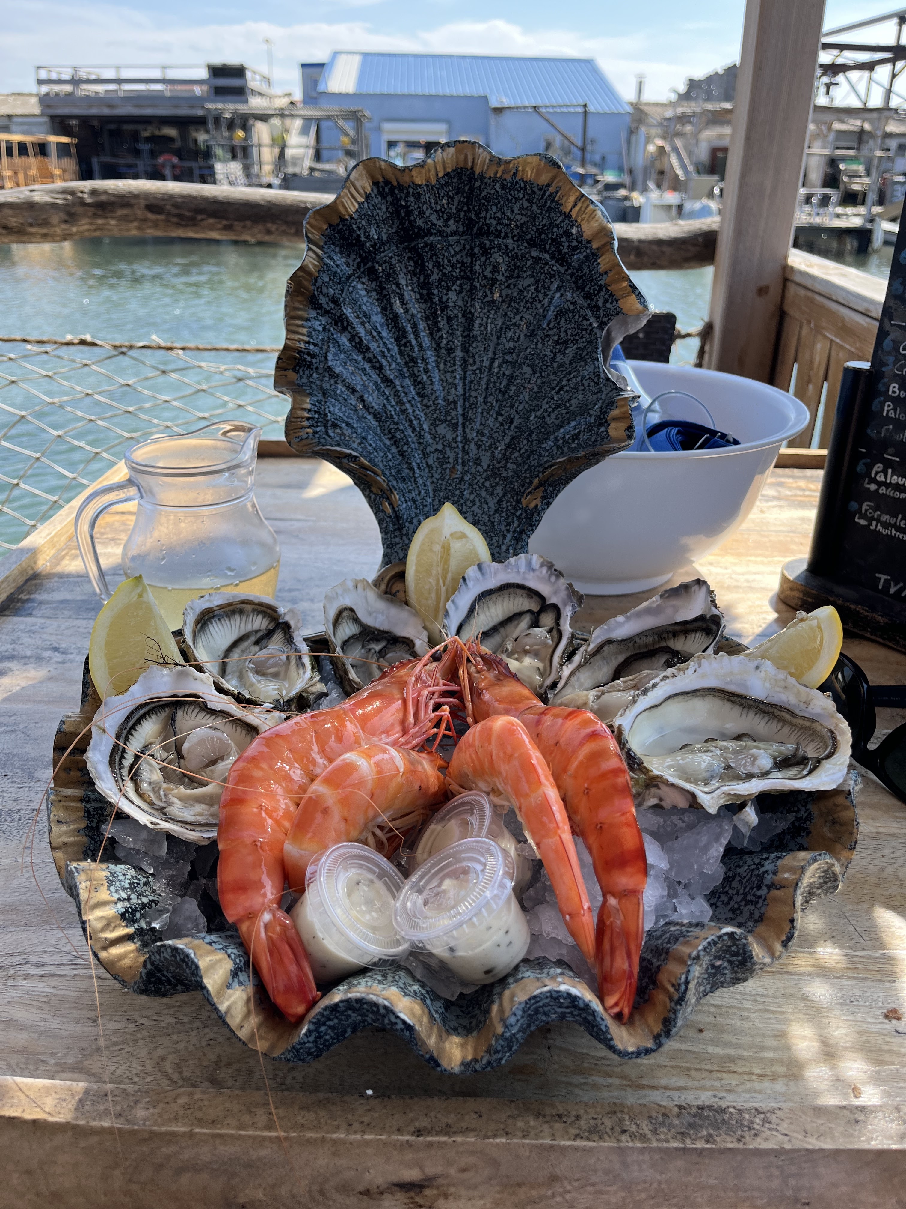 Super endroit, la terrasse donne un point de vue idéal sur le canal reliant la mer a l'étang. Les crevettes et les fruits de mer sont excellents, à déguster sur place ou à emporter. Le personnel est aimable et souriant et les prix plus que raisonnables. Idéal pour un moment entre amis, en famille ou à deux, pour découvrir la production locale d'huîtres et le vin des environs. Je recommande vivement. Vos passerez assurément un bon moment.