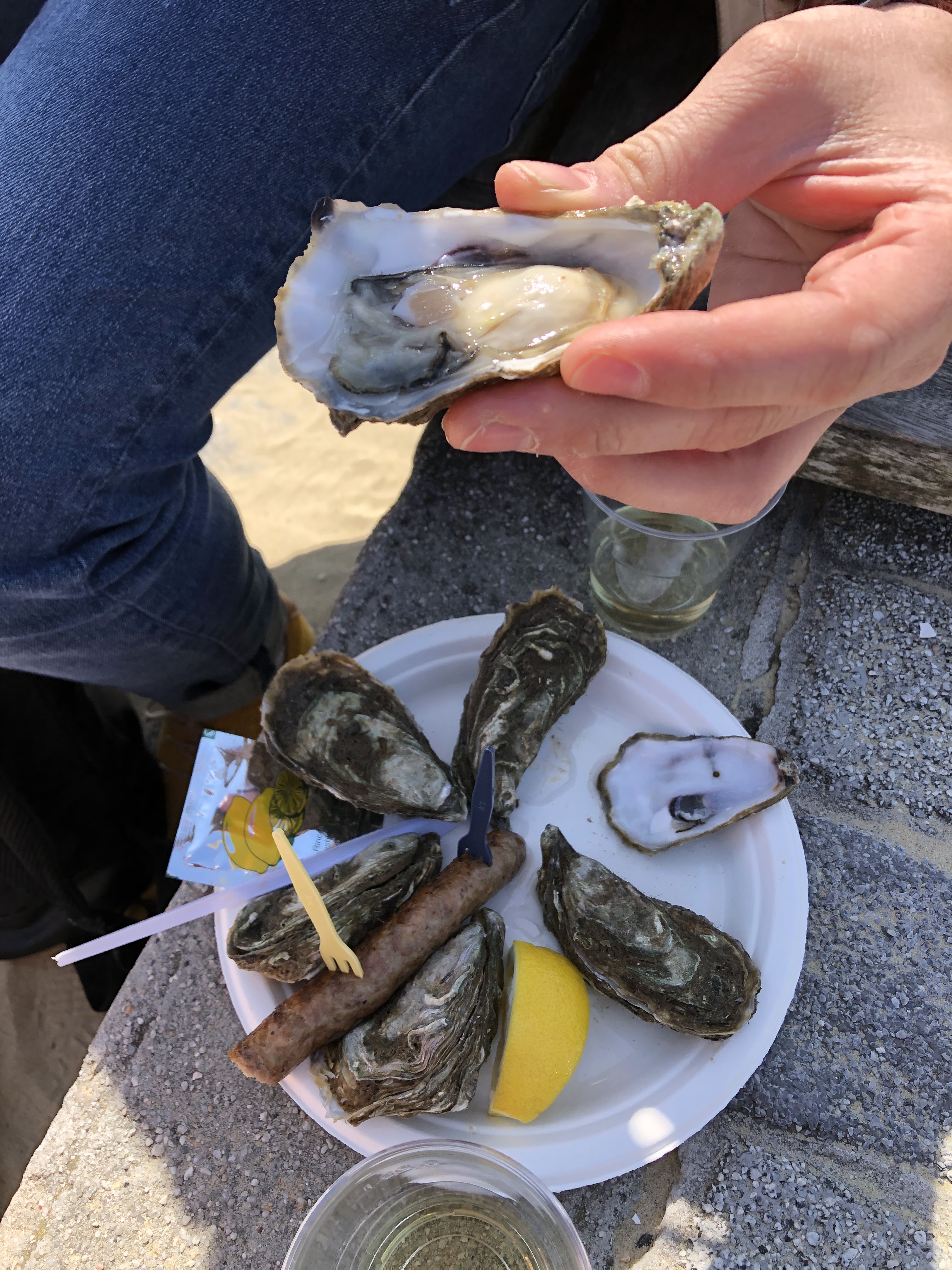 Serveuse SUPER SYMPA! Au petit soin pour nous préparer une assiette d’huîtres à emporter avec « la saucisse » traditionnelle (je ne connaissais pas cette tradition apparemment locale) qui venaient du Jacquet (10€ les 6), avec la bouteille de vin bien fraîche pour accompagner, le tout à emporter - conditions actuelles obligeant . Merci pour le régal les huîtres et le vin étaient parfait 🥰