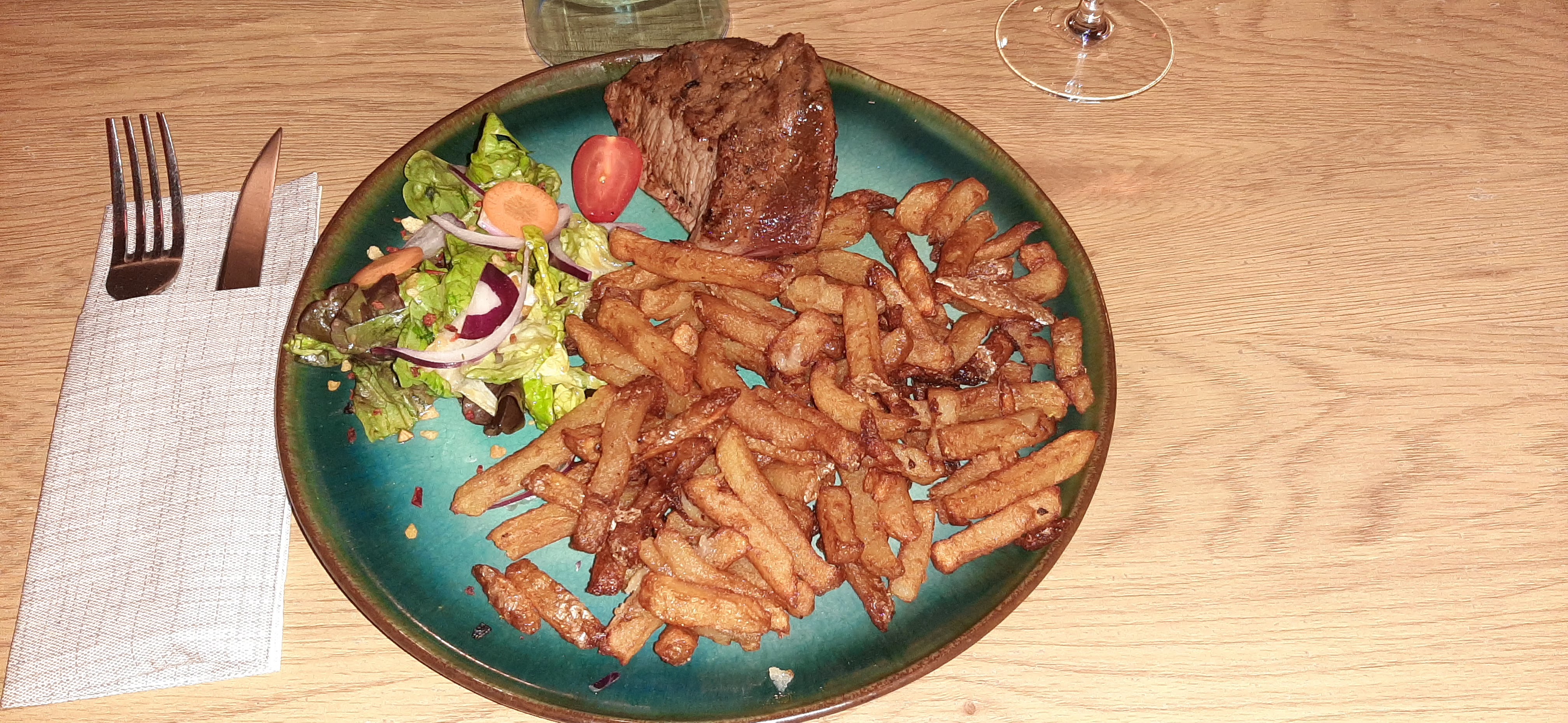 Excellent, salade chèvre miel et pièce de boeuf/frite la qualité de la viande est exceptionnelle très bon moment passé je recommande