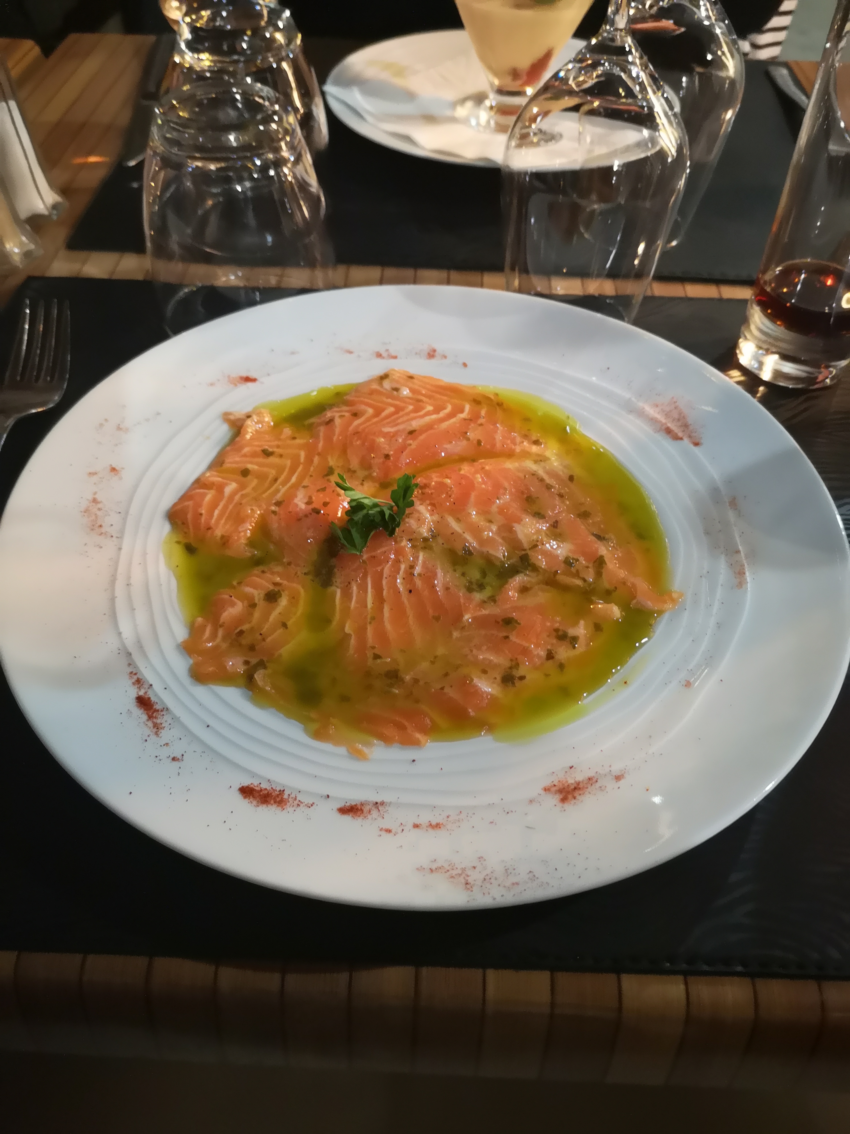 Repas délicieux. La marinade de saumon du menu à 23 € est fabuleuse, idem pour la papillotte de daurade avec une petite sauce magique. Seul bémol de mon repas : le tiramisu aux fraises qui manquait de fraises alors que c'est encore la saison et qui n'était pas assez frais. Dommage mais globalement, je me suis régalée. Quant au service : très bien. Serveurs très sympathiques, service rapide et très bien organisé. Je reviendrai c'est sûr.