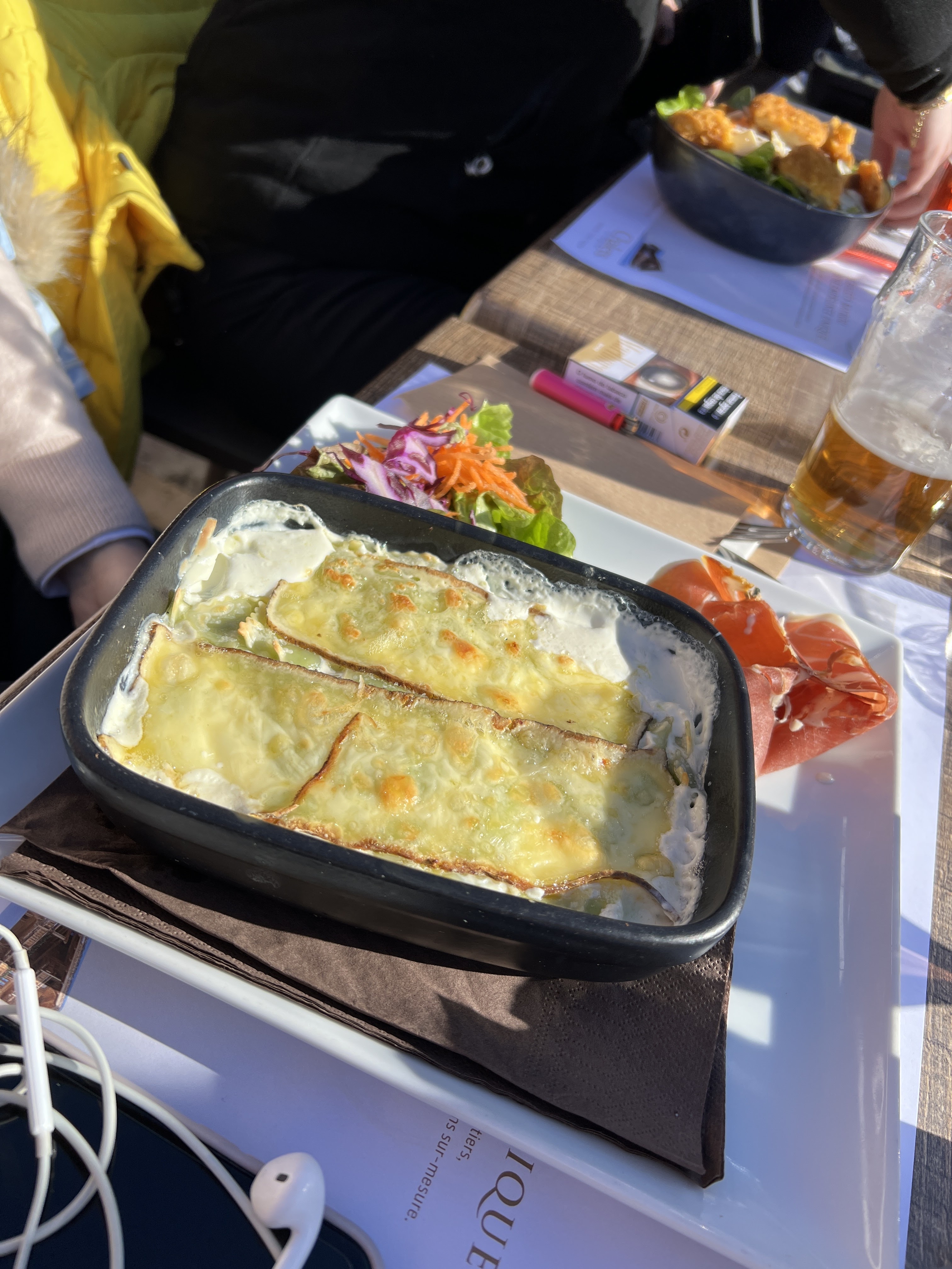 Buger Melezin, meilleur burger que j’ai mangé de ma vie, à 23€ (ce qui est très raisonnable sur les pistes) Mont blanc en dessert, incroyable aussi ! Service adorable :)