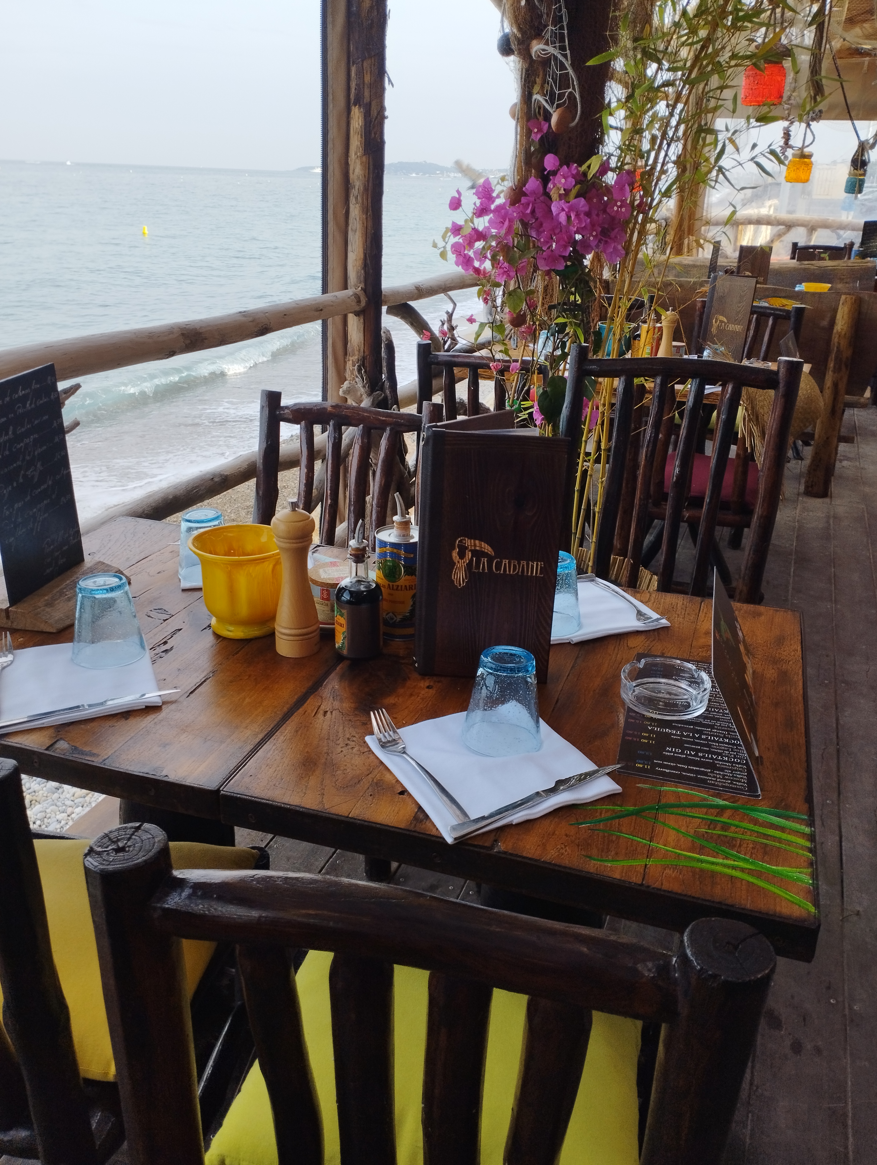 Un très beau lieu ! La Cabane est un peu The Place to Be en bord de mer et ça se comprend. Très bel endroit, les pieds dans le sable au bord de la Méditerranée. Le son de la mer, l’espace tropical, un air de bout du monde à deux pas de Nice et d’Antibes. Très agréable. Une belle carte pour manger, de beaux cocktails et une belle carte des vins. Le seul hic, c’est le prix. Tout est vraiment très cher, largement plus qu’à Paris, Chamonix ou Nice. Les mets sont bons et copieux, mais sans aucune saveur particulière ou travail exceptionnel, et totalement injustifiés au niveaux prix. On est quasiment aux prix d’un étoilé et pourtant loin en terme de gastronomie. Service ok. Merci à l’équipe.