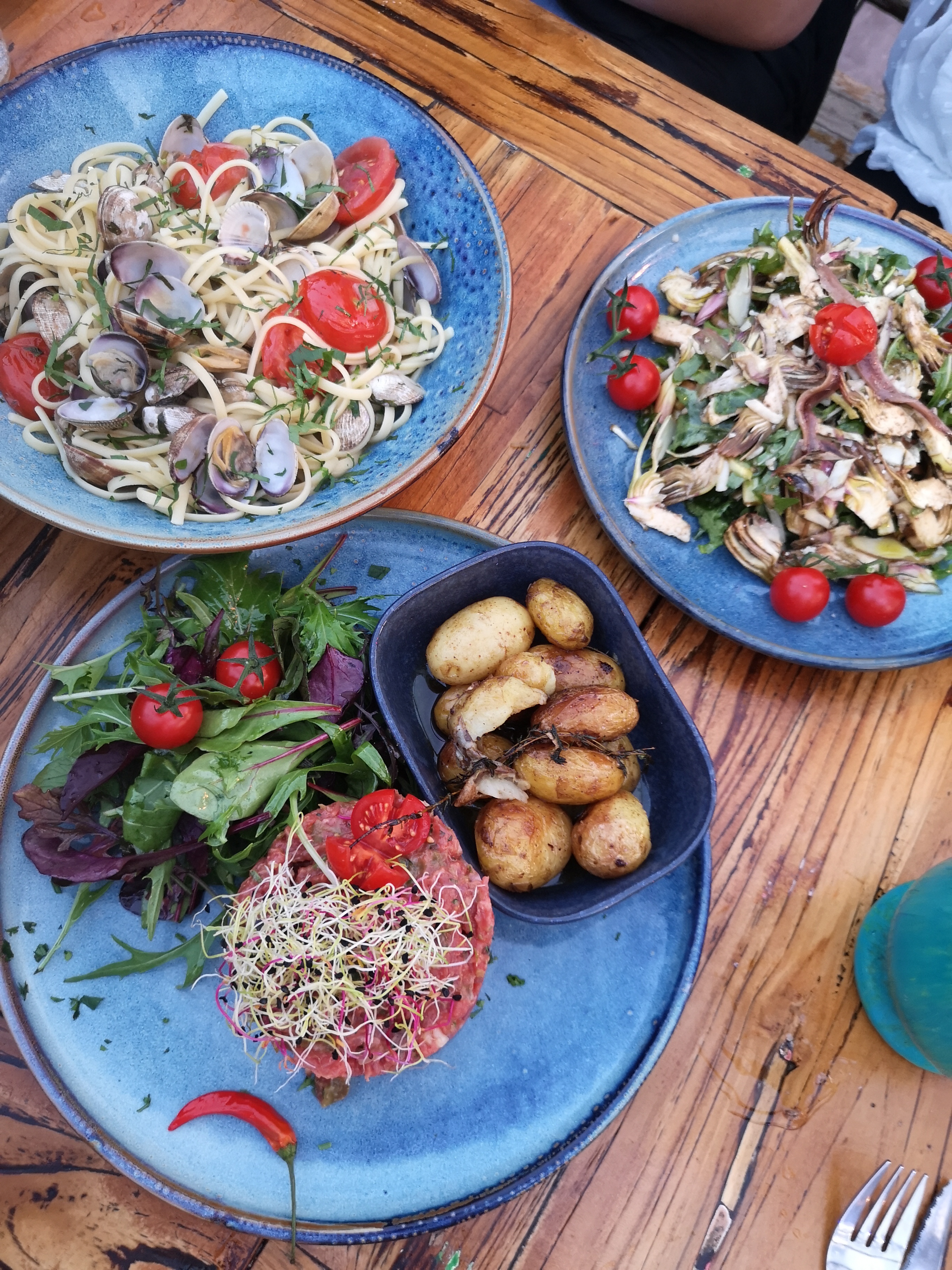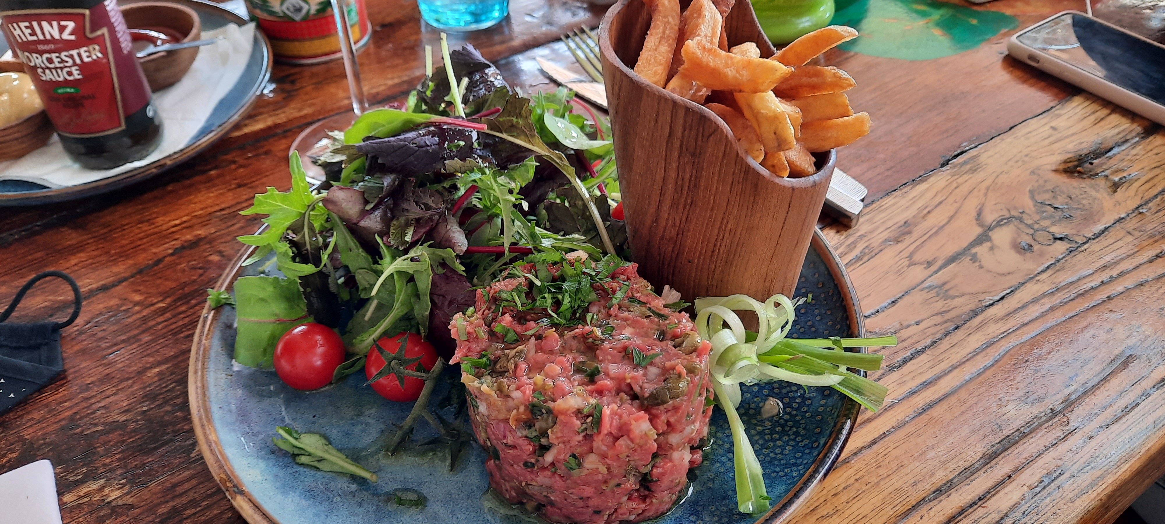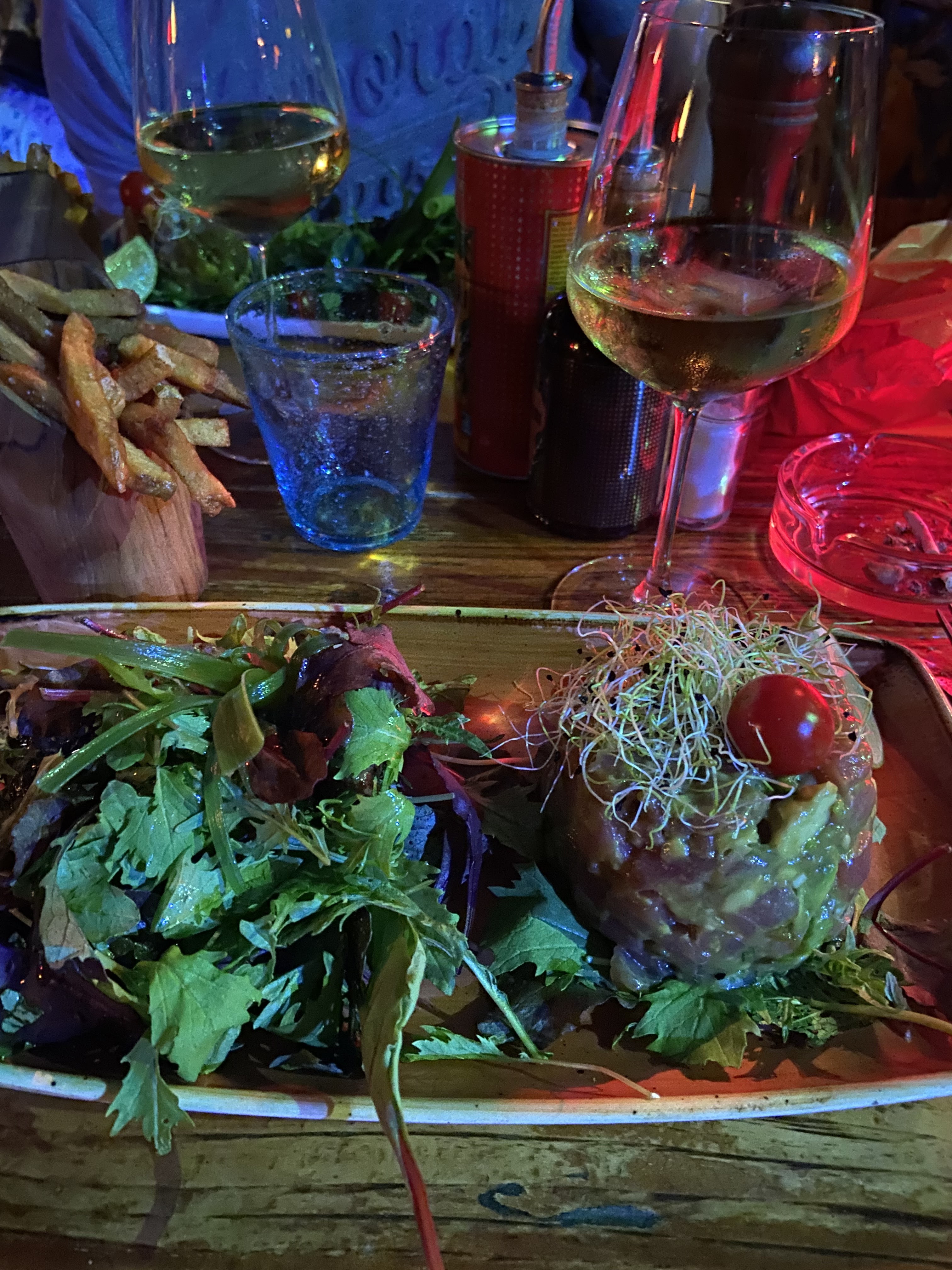 On a été ravis de nos plats, l’originalité et l’extravagance ne manquent pas ! Bon rapport qualité prix. Seul petit bémol : les plats étaient assez gras, avec beaucoup d’éléments frits même quand on s’y attendais pas (comme dans l’assiette niçoise). L’atmosphère est fun, on a juste eu quelques soucis à cause du vent mais ça ne nous a pas dérangé plus que ça. Serveur super agréable !!