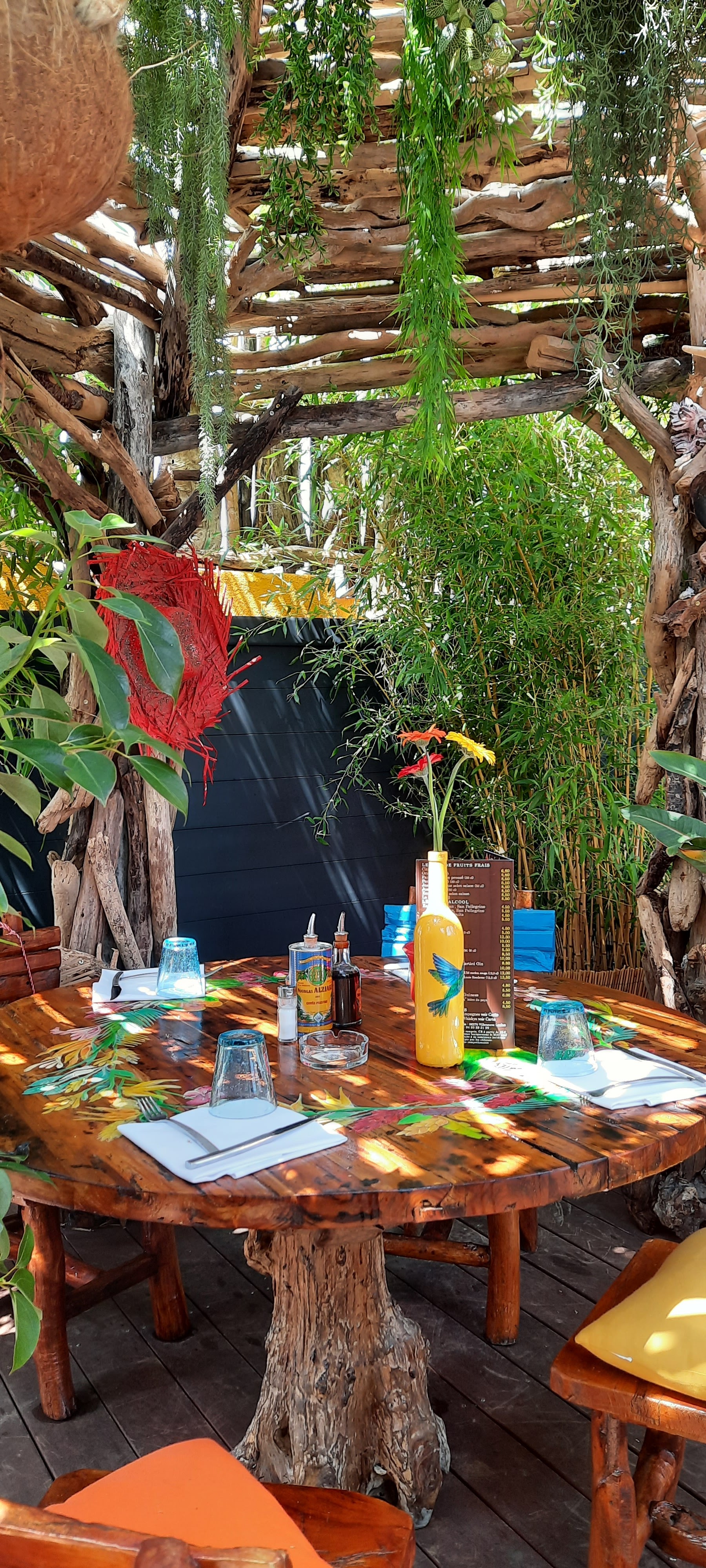 Un véritable coup de coeur pour cet endroit excepcionel ! Grace à sa superbe décoration on a l'impression d'etre dans une cabane au Caraïbes. Tout y est: endroit idyllique, personnel extrêmement accueillant et sympatique. Les repas sont délicieux et copieux sans parler des cocktails XL qui valent largement son prix avec des fruits frais exotiques. Ce lieu vaut vraiment le detour! Jamais on a vu un bar-resto si magnifique !