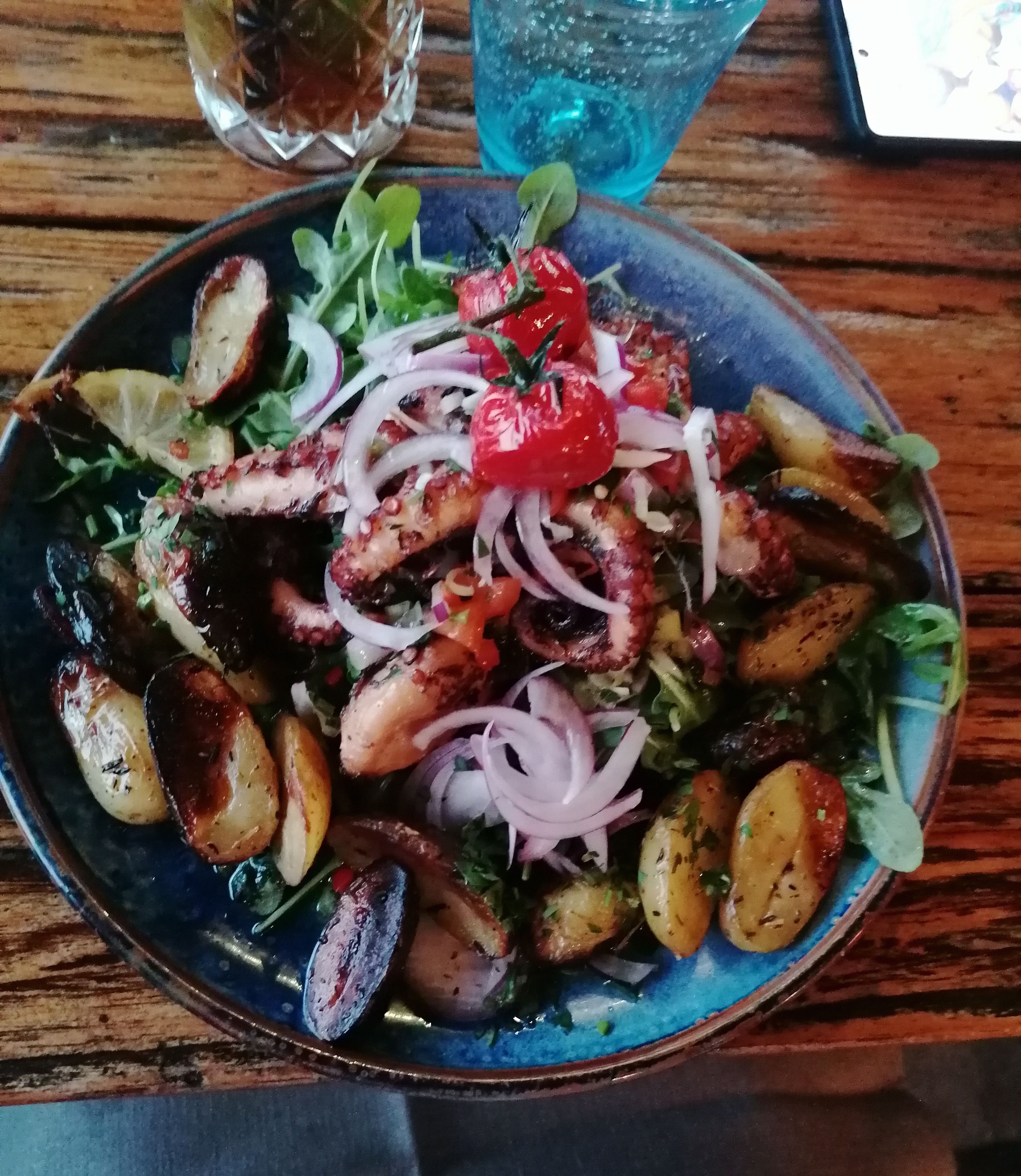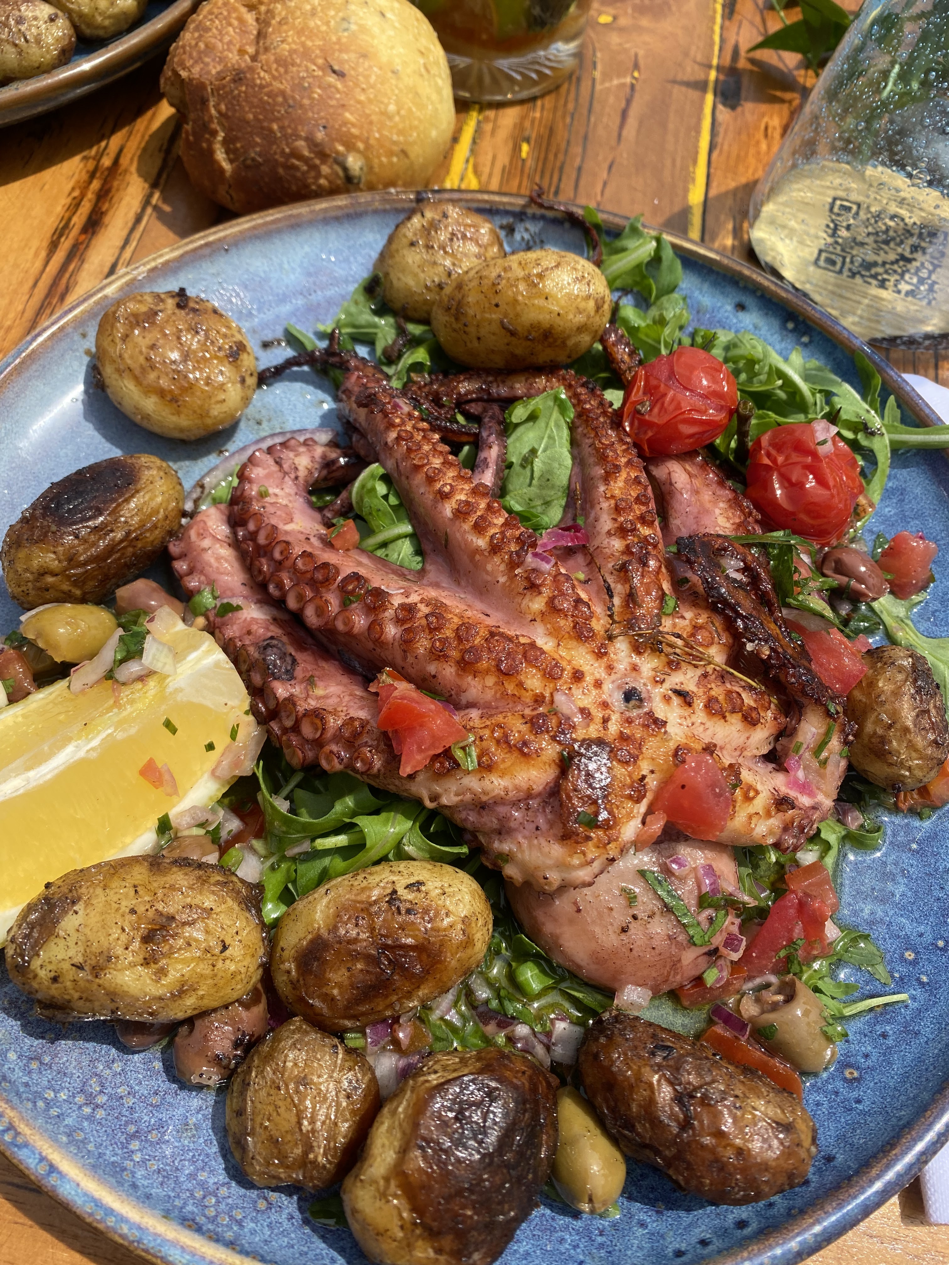 Petit lieu de paradis ! L'ambiance est génial, le personnel de bon humeur et agréable, les cocktail sont délicieux, la petite entrée à partager de calamar frais frit un délice ! ( la preuve je l'ai même pas prit en photo tellement on l'a dévoré ! ) le dos de cabillaud au fruit de la passion que ma femme a prit un délice et l'assiette de poulpe entier rôti mais quelle merveille !!!! Les assiettes sont bien garnis on en ressort rassasié ! Et pour finir merci à vous tous que ce soit les serveurs, le barman pour ces bon cocktail et les cuisiniers pour le repas vraiment bon ! Je recommande fortement ce lieu c'est une belle découverte et quand on reviendra dans le coin on reviendra à coup sûr chez vous ! Bonne continuation à vous !