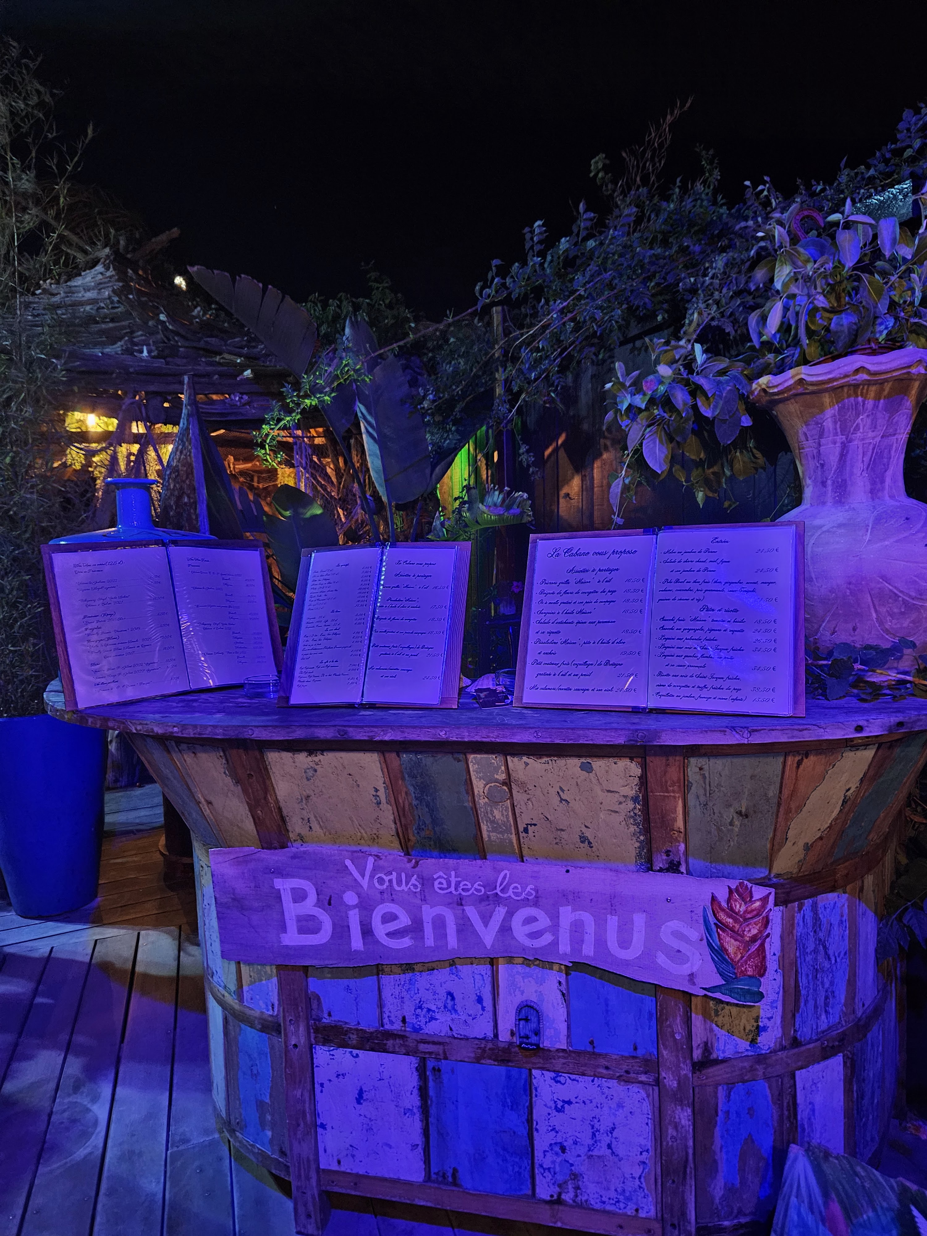 Une soirée de juillet à la Cabane Villeneuve-Loubet… Un moment très agréable dans cette cabane à l’ambiance tropical ! L’accueil est très chaleureux et l’équipe aux petits soins pour vous promettre une soirée aussi gourmande que sympathique ! Bonne sélection de vins, nous avons fais confiance aux recommandations et nous sommes régalés avec un rosé sec et un rouge Sancerre. PS : Les plats sont très copieux, prévoir de la place avant d’y aller 👍