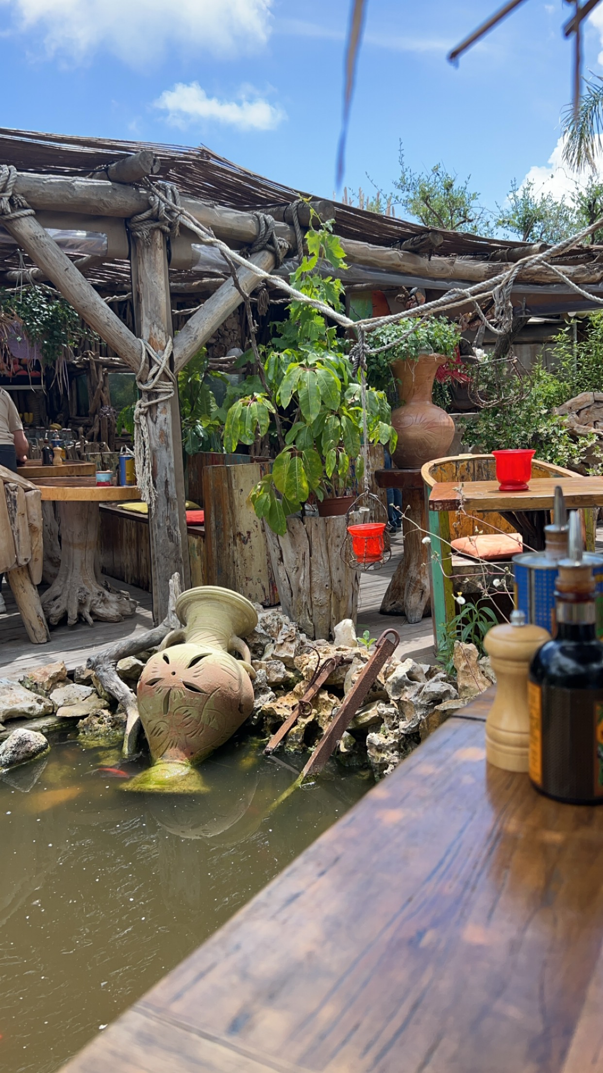 Endroit incroyable!!! Soulful, savoureux, atmosphérique, MAIS une très, très longue attente pour la commande ! Ou alors c'est dû au grand nombre de monde, ou quoi...... mais c'est délicieux, et joliment présenté, une musique agréable, le bruit de l'eau.. cool !!!!
