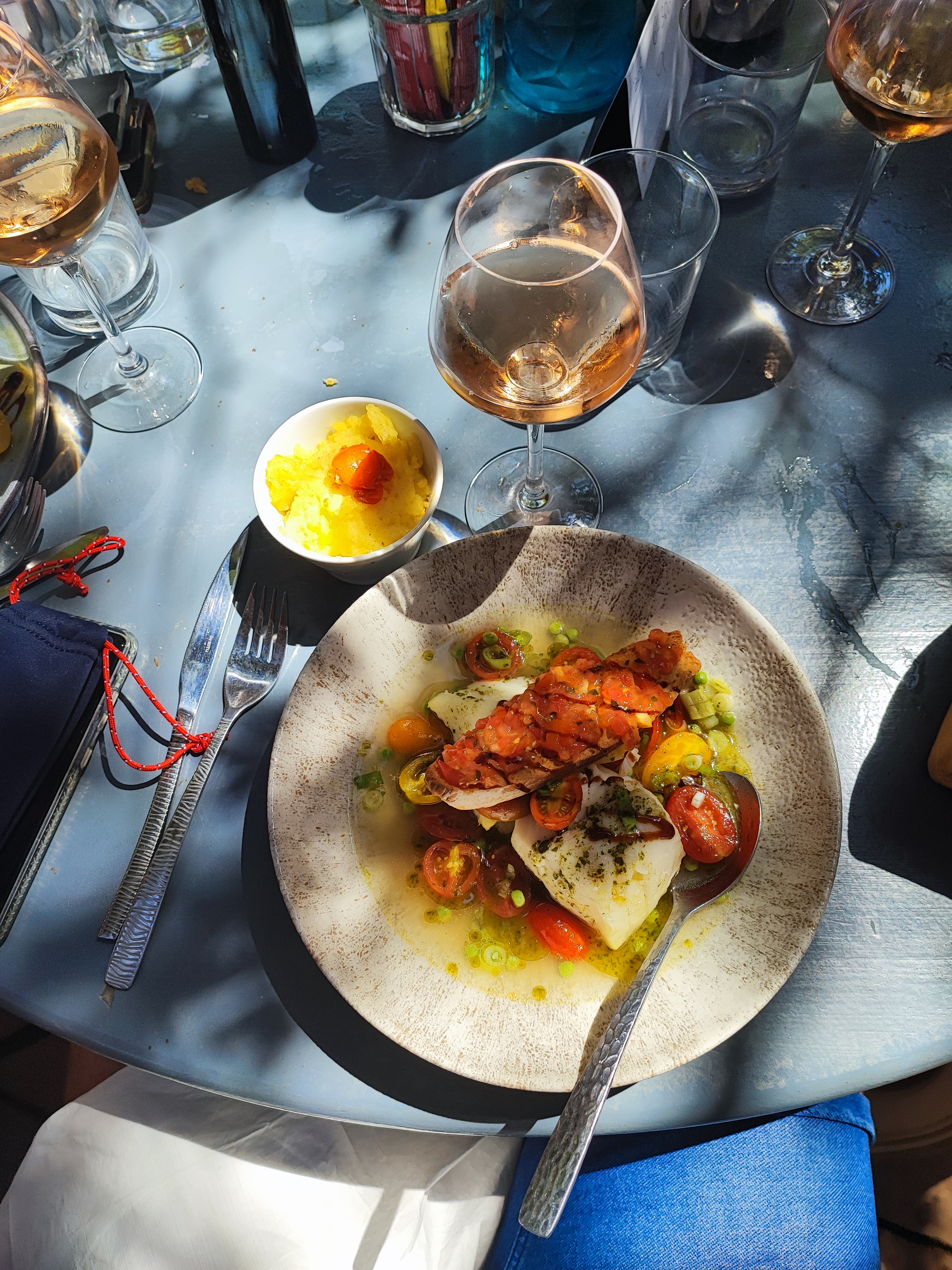 La joie retrouvé, le plaisir d'être en terrasse, que du bonheur, j'avoue que payer 7 euros de parking pour 2 heures, ça pique, mais bon, je vous garanti que le lieu est magique, car proche de la plage, et surtout du château de bregonçon...