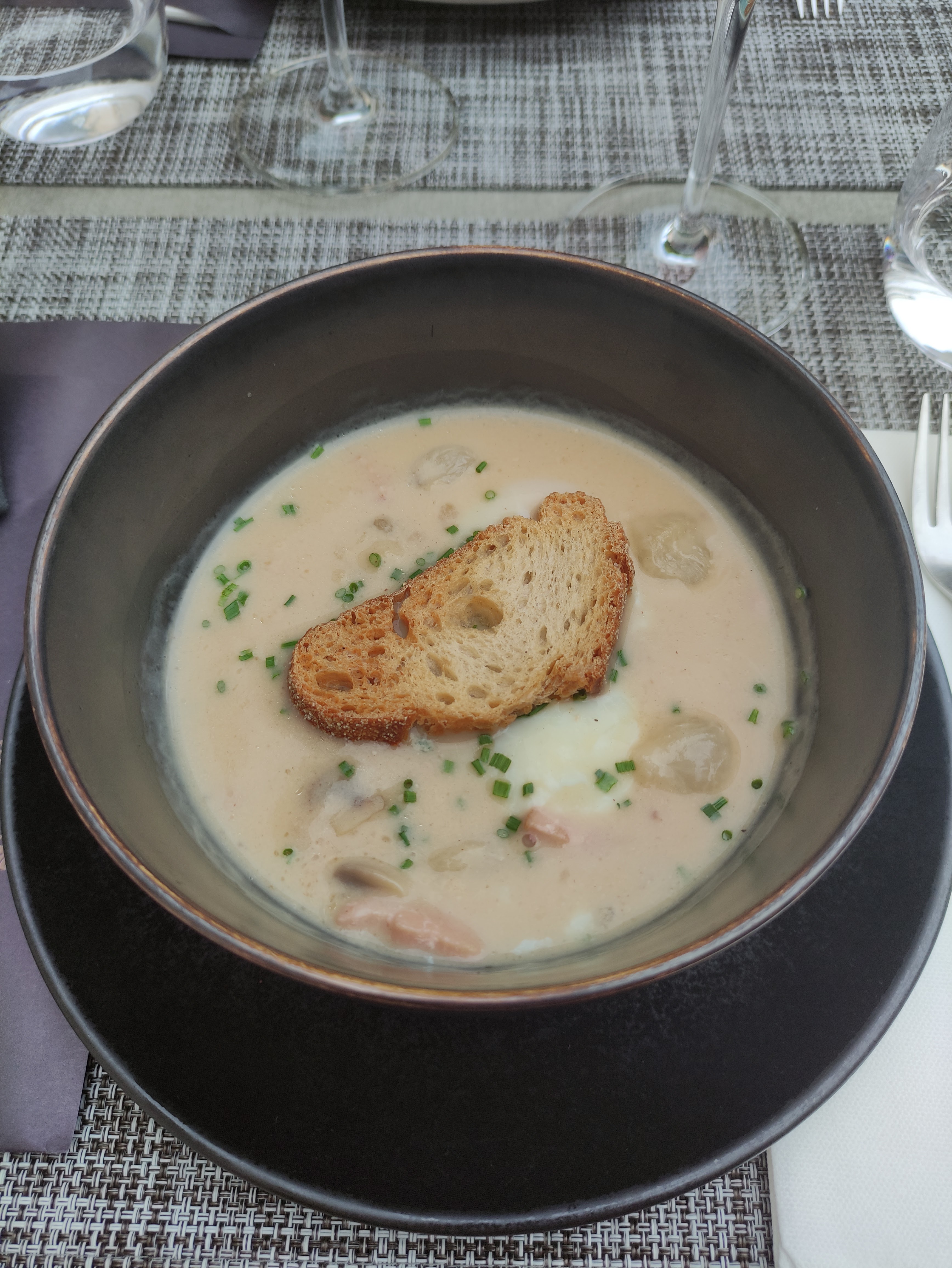 Les commentaires étaient élogieux et c’était totalement mérité. Tout était parfait! Cuisine savoureuse et raffinée! Choix des vins parfait. Belle terrasse avec en prime une météo estivale Parfait