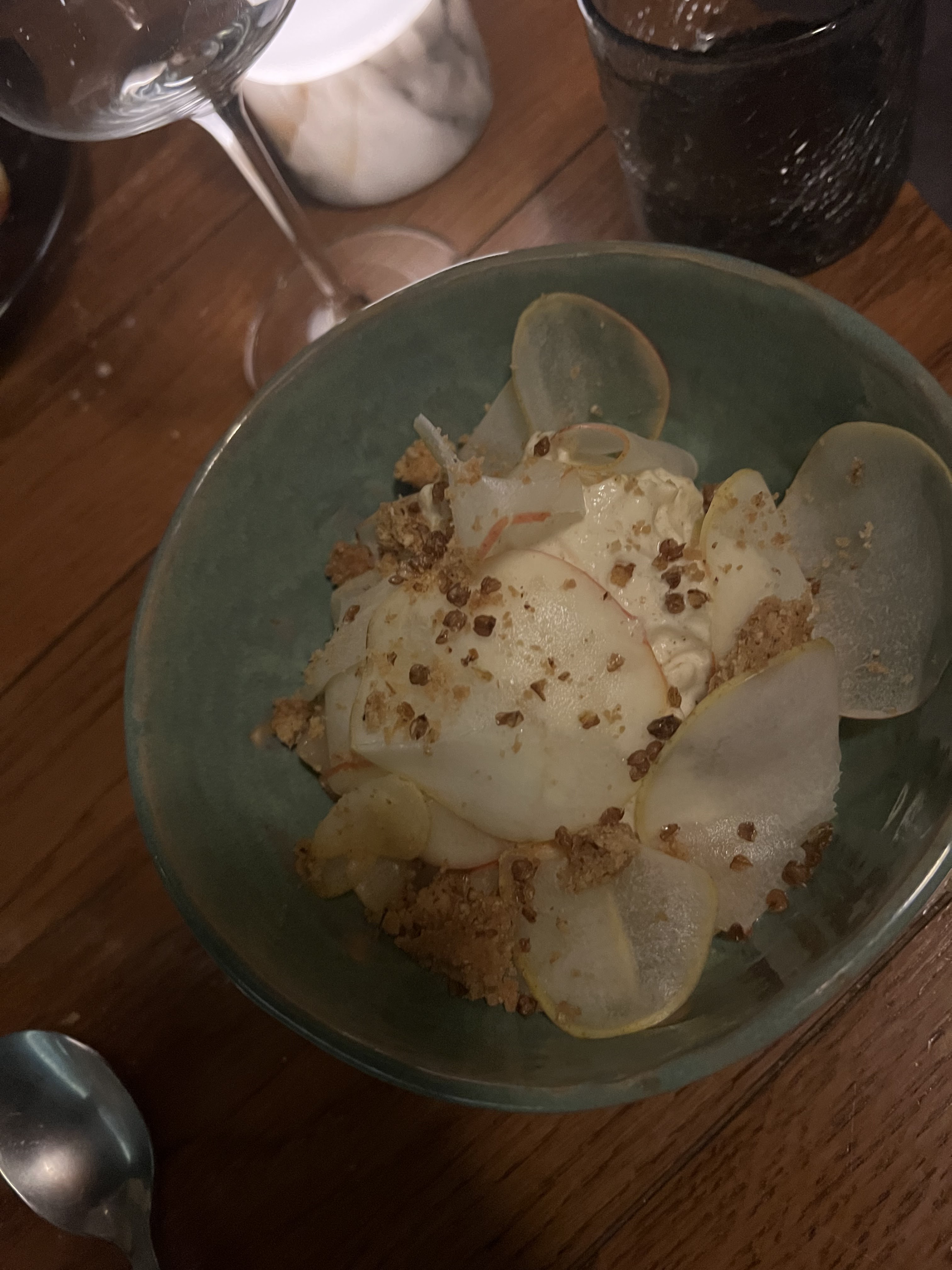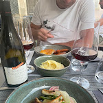 Un service agréable et efficace avec une qualité de saveur exceptionnelle et des associations intéressantes (la tarte aux tomates et aux pêches était une révélation !) et une belle carte des vins. C'est dommage que le centre-ville ne soit pas piétonnier pendant les heures de bureau car il y avait beaucoup de gros véhicules qui passent pendant que nous mangions mais ce n'est pas la faute du restaurant juste quelque chose à garder à l'esprit.