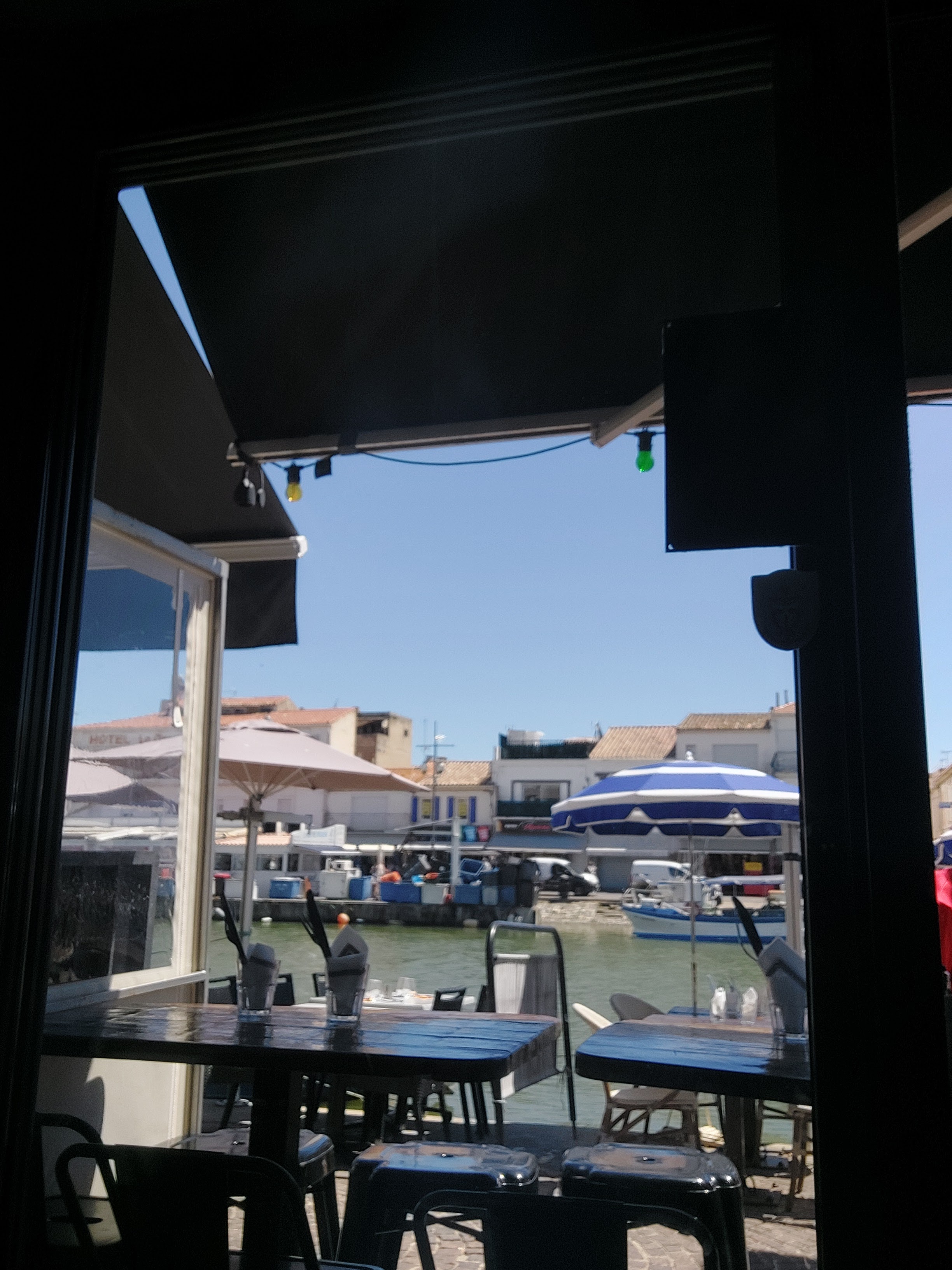 Serveuse un peu agaçante avec ses réponses à côté de la plaque (ex : il y a quoi dans la salade italienne ? Réponse : eh bien de la salade et du jambon serrano, comme partout... ben non pas comme partout, le serrano est espagnol ! - C'est quoi comme Pastis? Réponse : du pastis de Marseille, comme partout, c'est écrit sur la bouteille!). Le serveur était sympa, même s'il a essayé de stabiliser notre table au niveau des pieds alors que c'est le plateau qui déconnait... sinon, les plats étaient bons, l'emplacement est top, dans les prix du Grau du Roi.