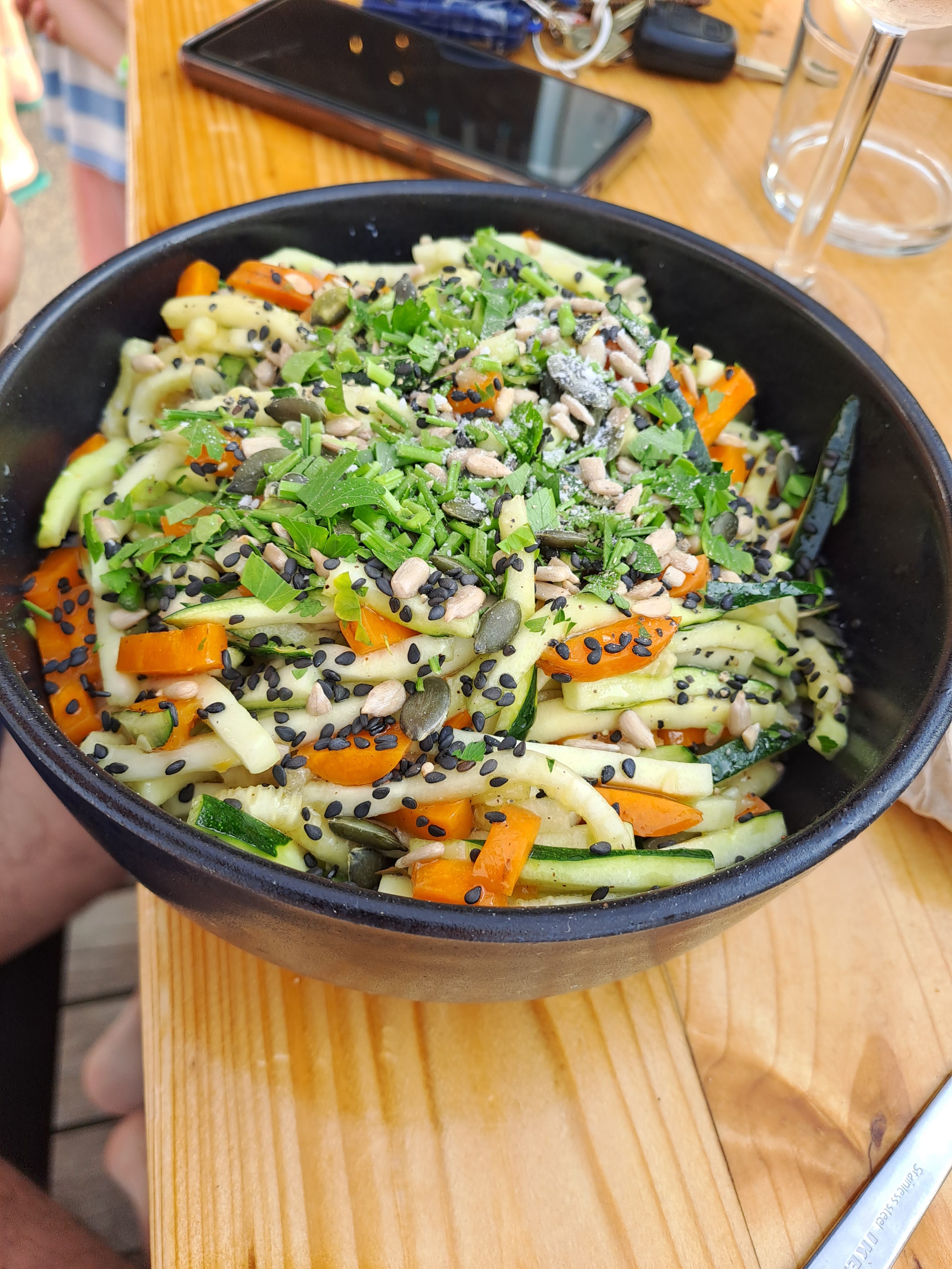 Équipe super sympa. Super menus enfants, ils se sont régalés. Enfin une salade où la garniture n'est pas juste sur le dessus, mais goûtu jusqu'au fond du saladier, super bonne ! Très copieux. Bon courage pour cet été !