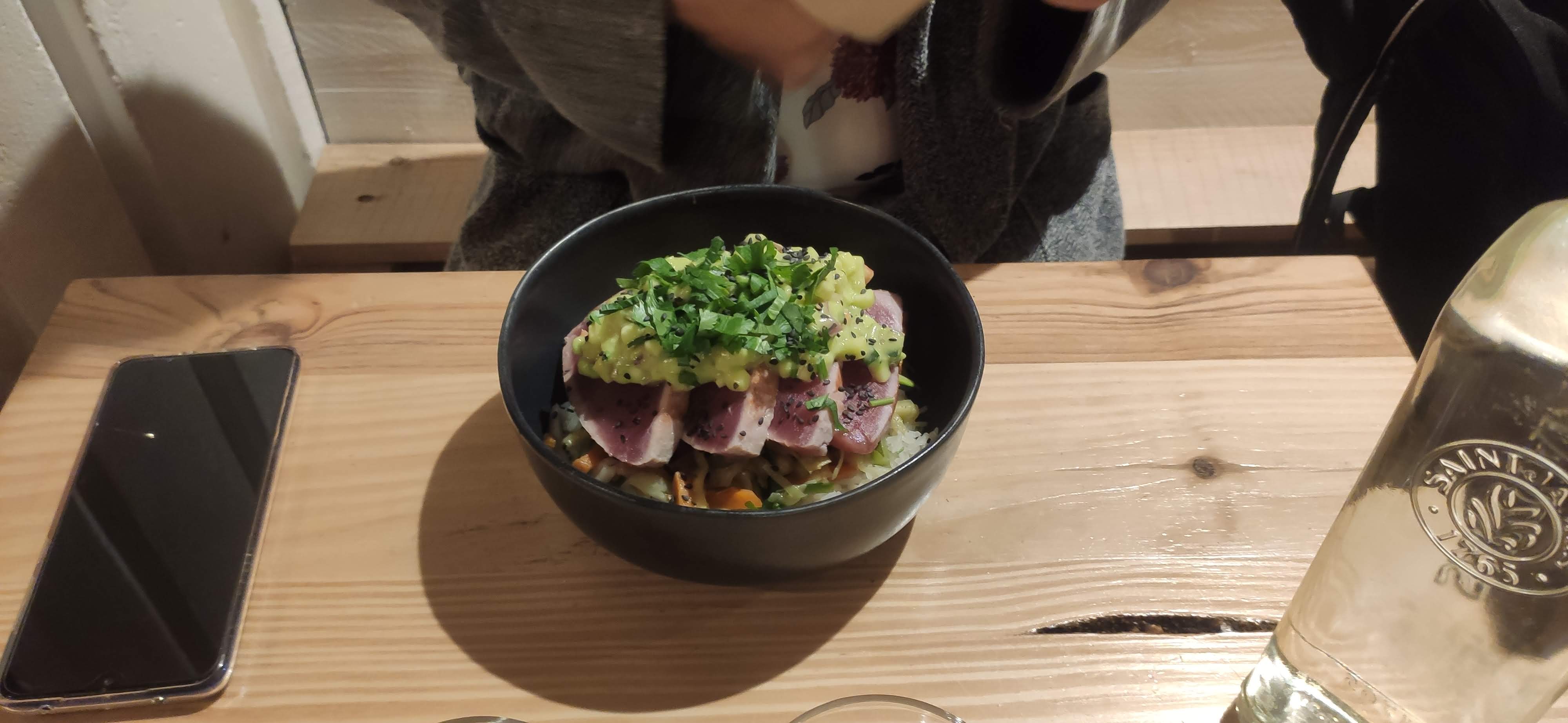 Un sans faute ! Thon fraîcheur avocat : juste divin ! Cuit à la perfection, accompagné d'un riz parfumé qui fait voyager, des petits légumes croquant et fondant à la fois, tout en étant plein de saveurs, un tableau digne d'un étoilé. Vraiment chapeau. Le genre de plat dont on se rappelle ! Impatient d'y retourner pour goûter le reste de la carte ! Et le tout accompagné d'une équipe dynamique, souriante et agréable ! Vous êtes au top ! Ce n'est pas mon genre de laisser un avis mais cette fois, c'est amplement mérité! Merci a l'équipe !