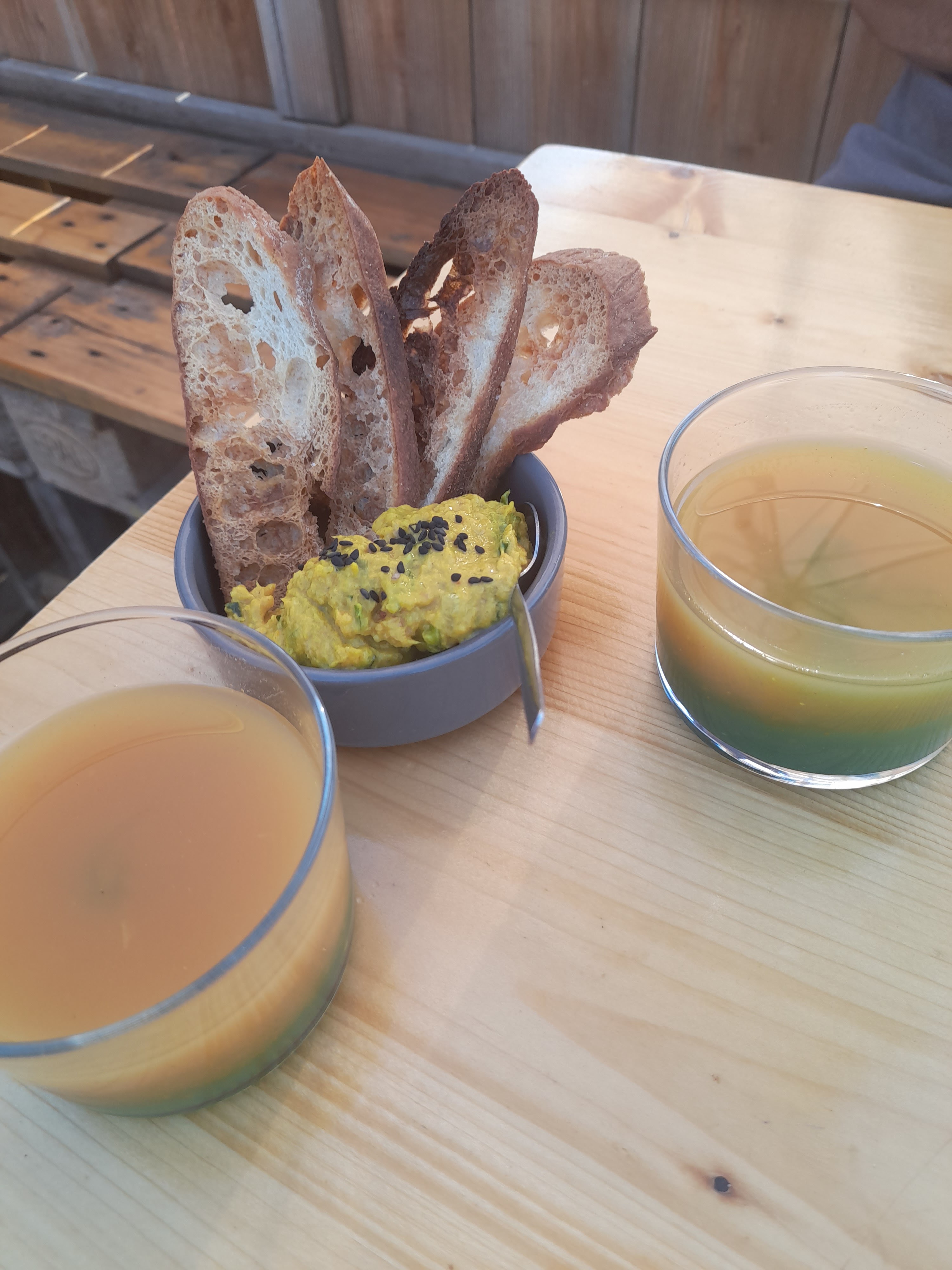 Accueil sympa et simple La serveuse explique à merveille la composition des plats. Les plats c’est juste une merveille de saveur, un endroit rare où tout est réuni l’accueil au top le service au top pas d’attente, la cuisine généreuse et surprenante Un seul mot pour l’équipe de la cagette BRAVO et merci