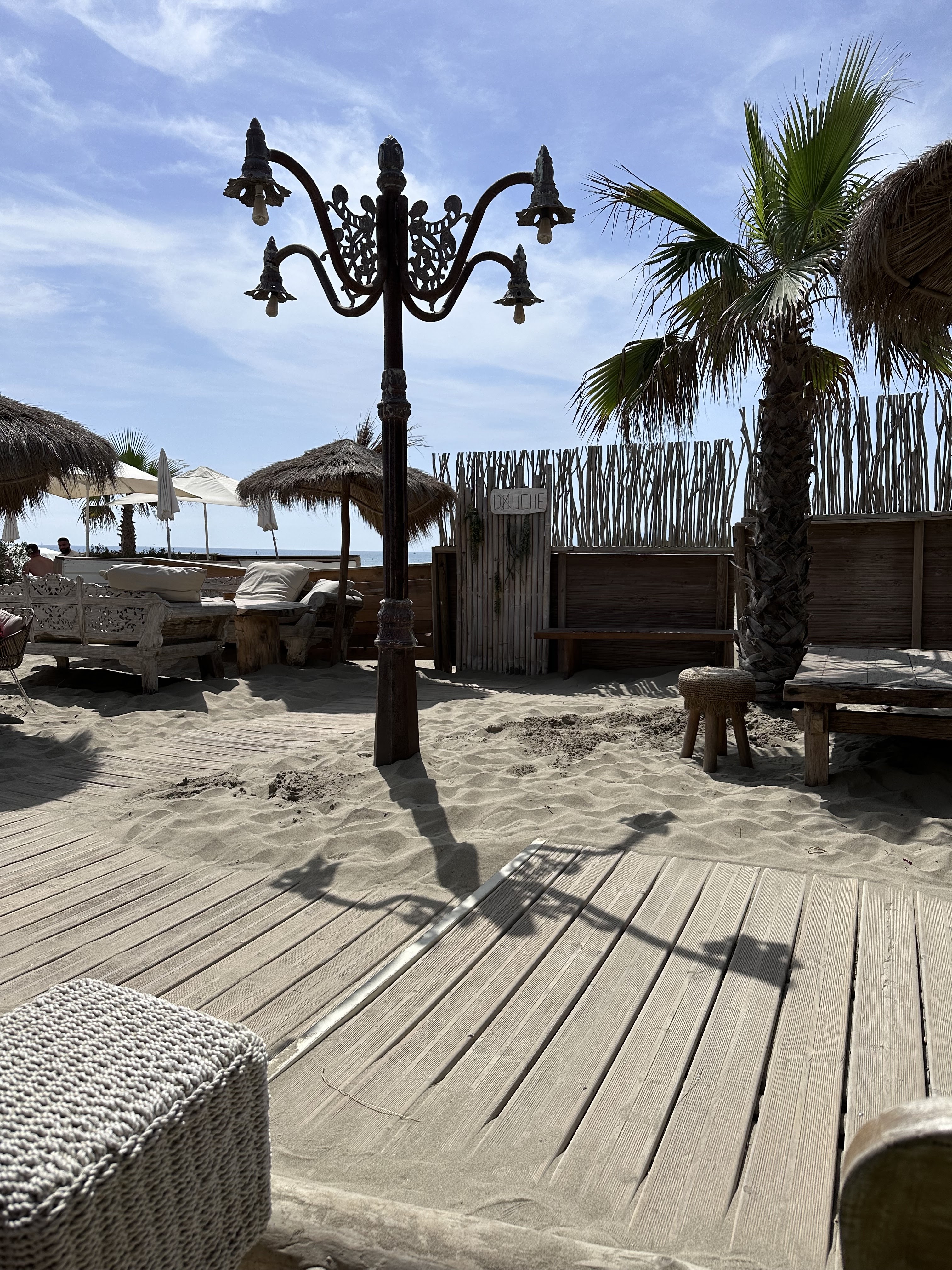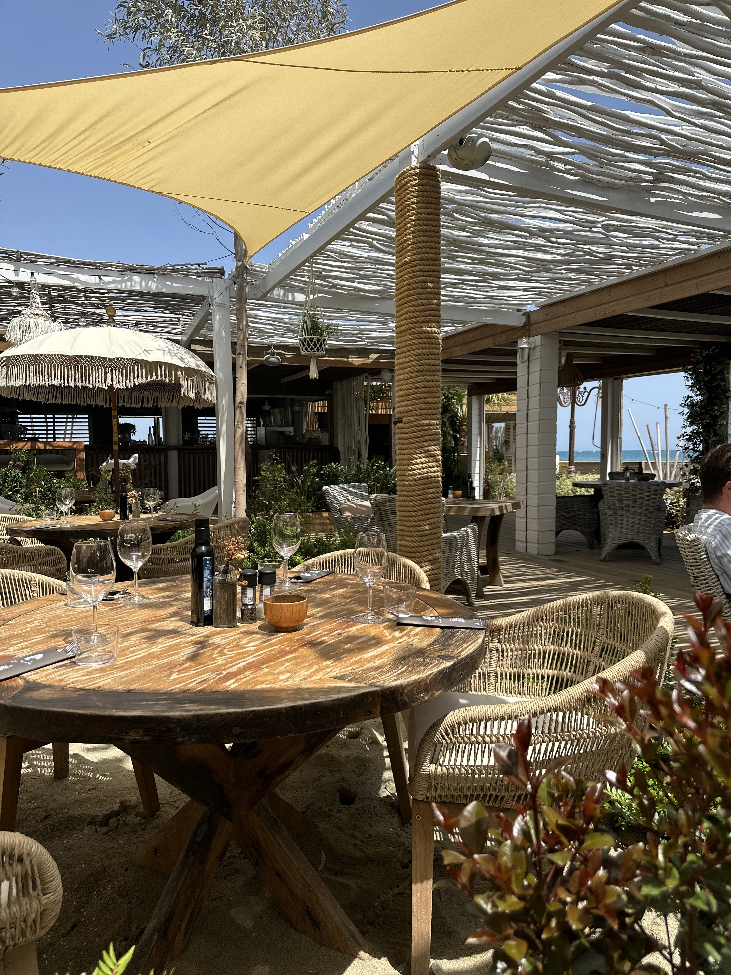 Súper endroit fresh et de bonne qualité, l'espace est décoré avec goût, style naturel, beige, blanc et marrons, bois partout. je me suis transportée à Ibiza. La carte et les tapas, TOP, seulement restera a introduire un peu plus de plats végétariens. Sinon, prix et service (attitude du personnel) très bien. J'y suis allée avec une amie, on a réservé les transats le matin et puis on a mangé dans le restaurant. Je vais emmener mon copain et aussi ma famille. Vraiment agréable pour y passer une journée sur la plage avec toutes tes nécessités couvertes.