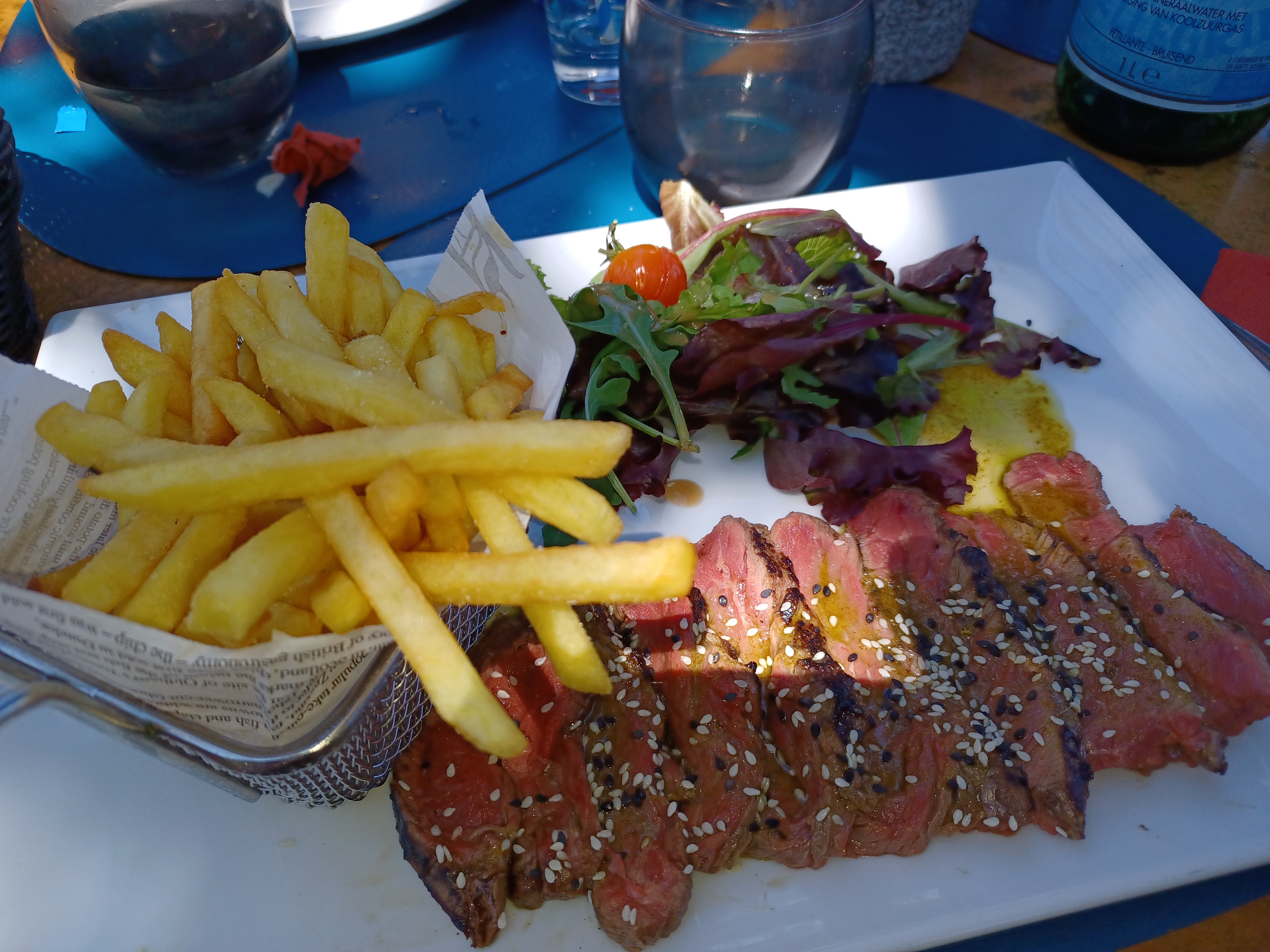 Nous avons mangé ici en famille pendant notre séjour dans la maison de vacances. Les pizzas étaient bonnes, juste un peu trop petites pour le prix. Les menus enfants étaient très bons, la salade de fruits à base de fruits frais et la mousse au chocolat étaient très probablement faites maison. Les moules au curry étaient très savoureuses, nombreuses et servies avec des frites en accompagnement (je n'en avais jamais entendu parler auparavant). Étant donné que l'endroit n'était pas très fréquenté, le service était un peu lent. Dans l'ensemble, ce fut une soirée conviviale et de la bonne nourriture !