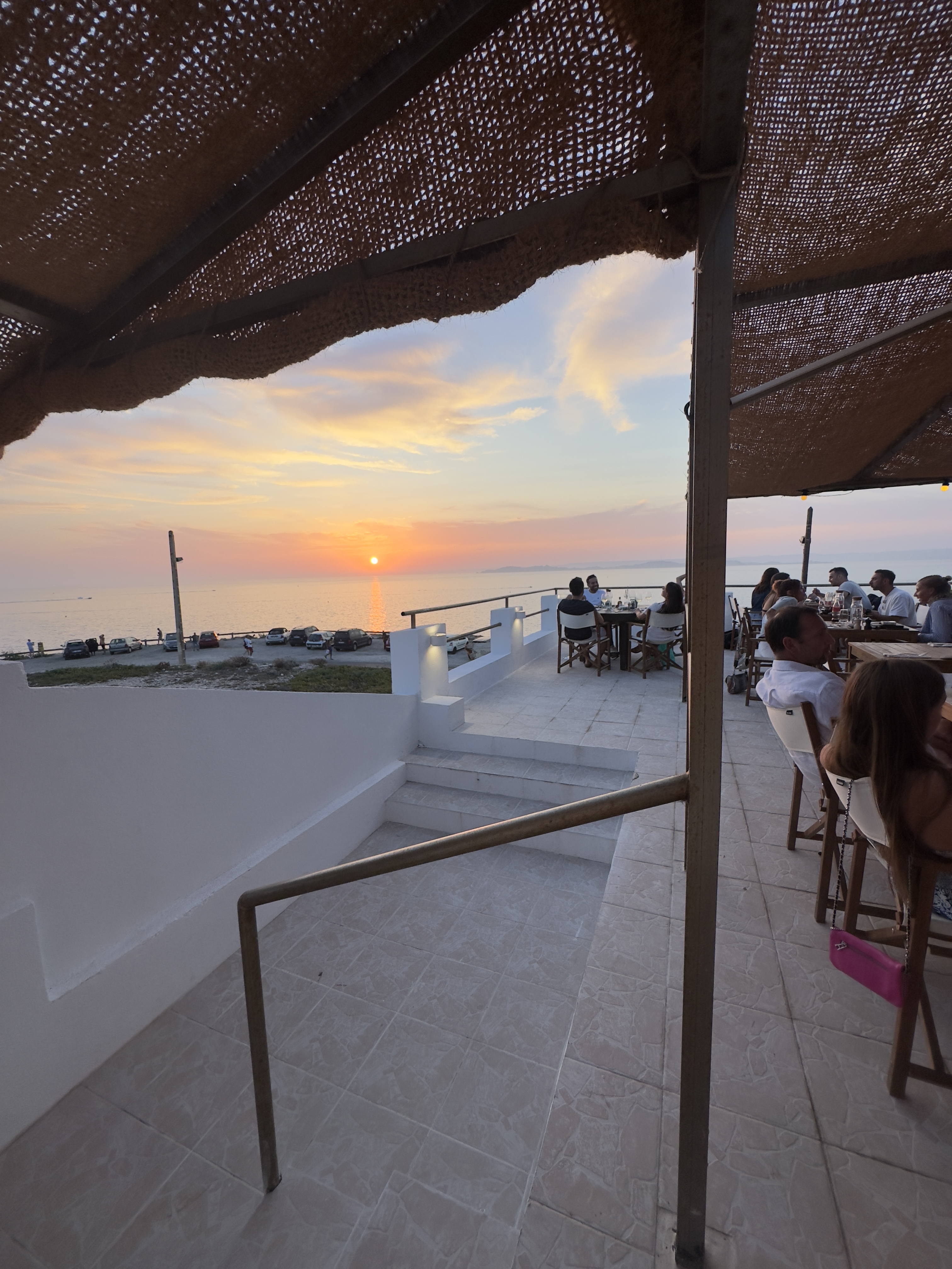 Cuisine tout à fait basique et moyenne a des prix astronomique au vu des assiettes Un lieu bling bling à la mode où il faut se montrer Un bruit routier infernal de la voie entre deux virages... Le coucher de soleil sauve l'établissement