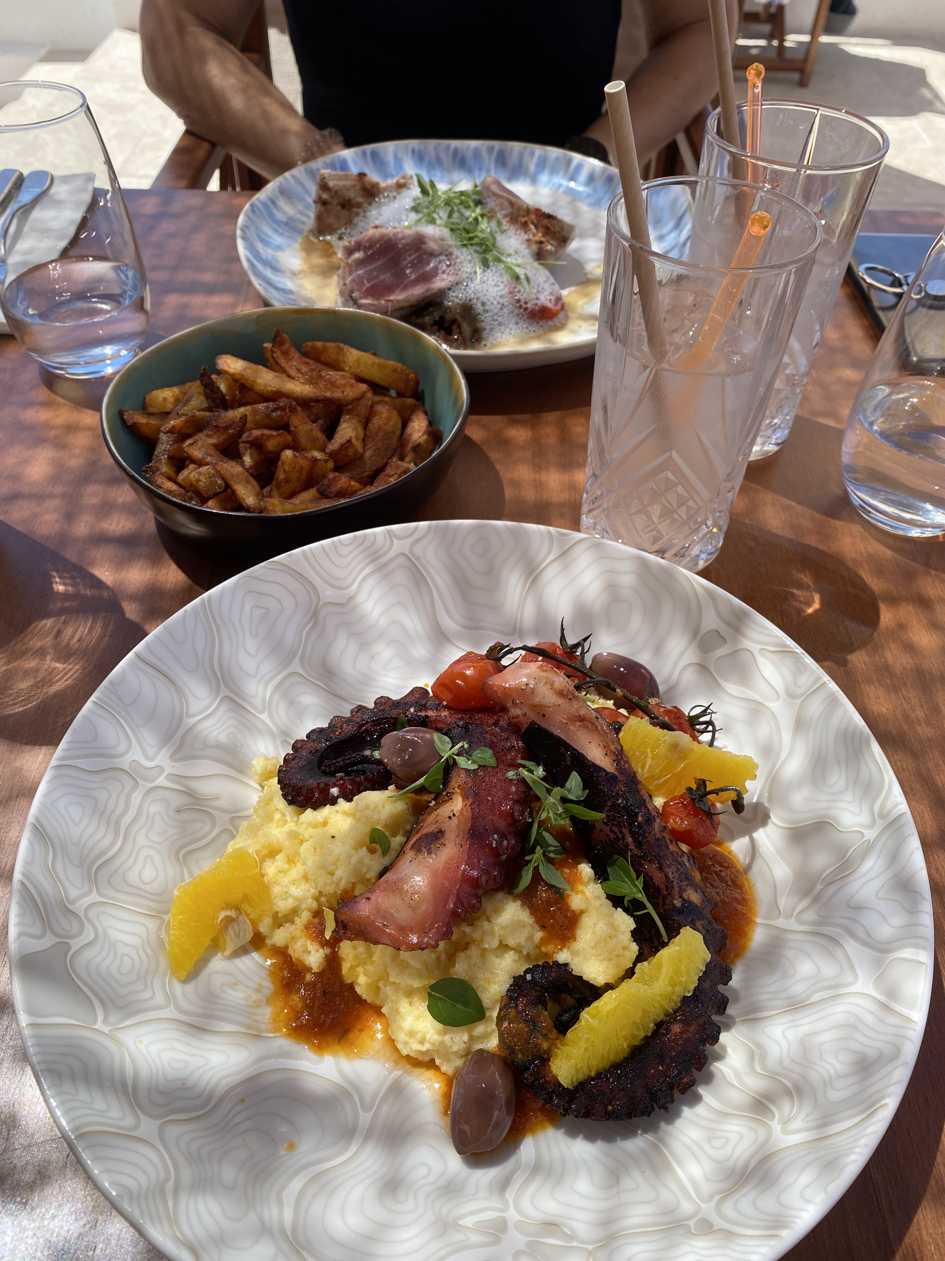 Nous avons adoré cet endroit. Ce que nous pensions être un arrêt rapide s'est transformé en un après-midi entier à dîner et à regarder les yachts passer. Service incroyable. Les serveurs étaient charmants et attentifs à tous les détails. La qualité de la nourriture a dépassé les attentes et les portions beaucoup plus grandes que prévu. Octopus était l’un des meilleurs que nous ayons jamais eu. Ambiance sympa en terrasse. Je reviendrai certainement.