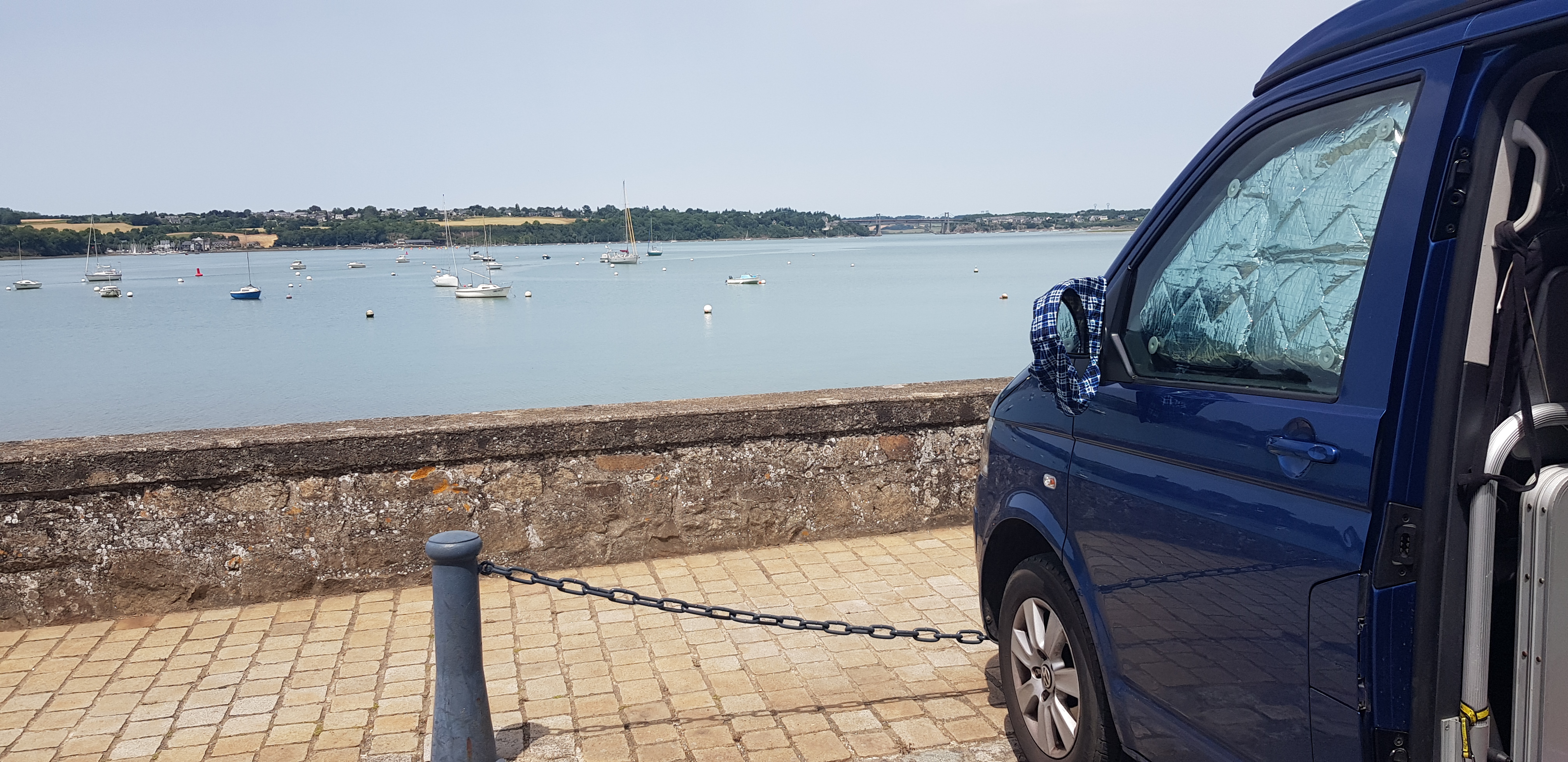 Belle cale Mais nous n'avons pas vu le phoque gris. Un beau paysage avec une belle vue. Un grand pont au loin et des maisonnette a gauche. Un château qui se nomme le chêne vert grâce aux chênes qui l'entourent. On est venu à marée haute et nous avons vu des beaux bateaux. Un mélange entre terre et mer. Sur le coter nous pouvons manger un petit repas sur le pouce grâce au restaurant glacier et bar